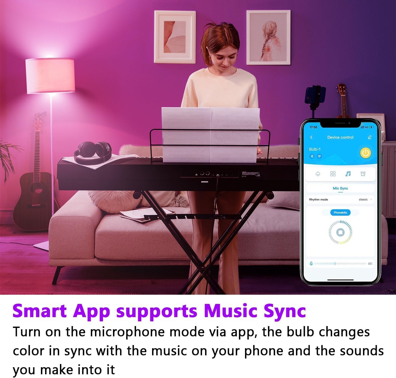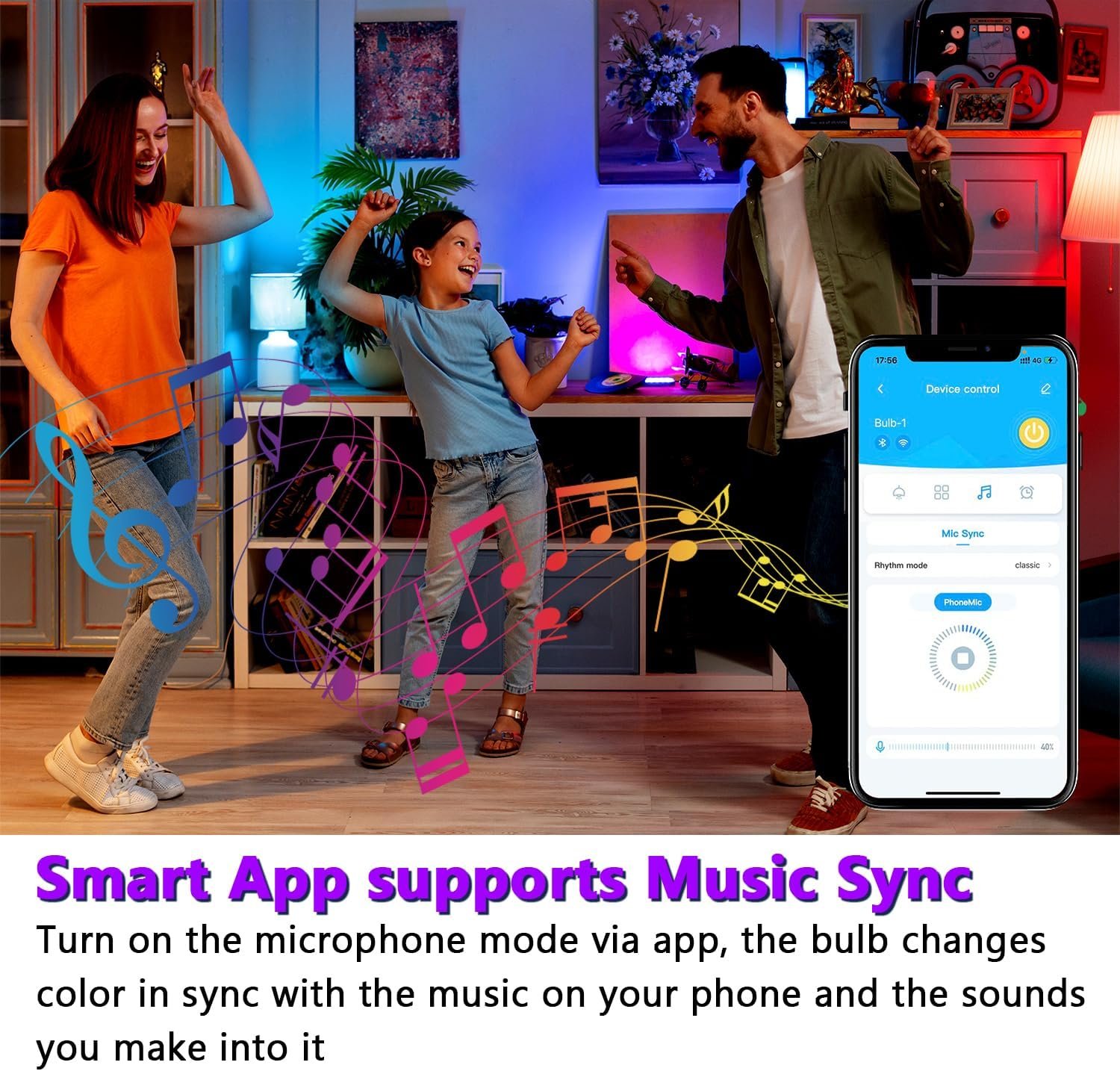 [Dance to Your Beat]: Our bulbs groove to the tunes picked up by your phone’s mic. With music sync via the app, watch colors pulse to the rhythm – just remember to grant mic access for a light show that moves with your melody.