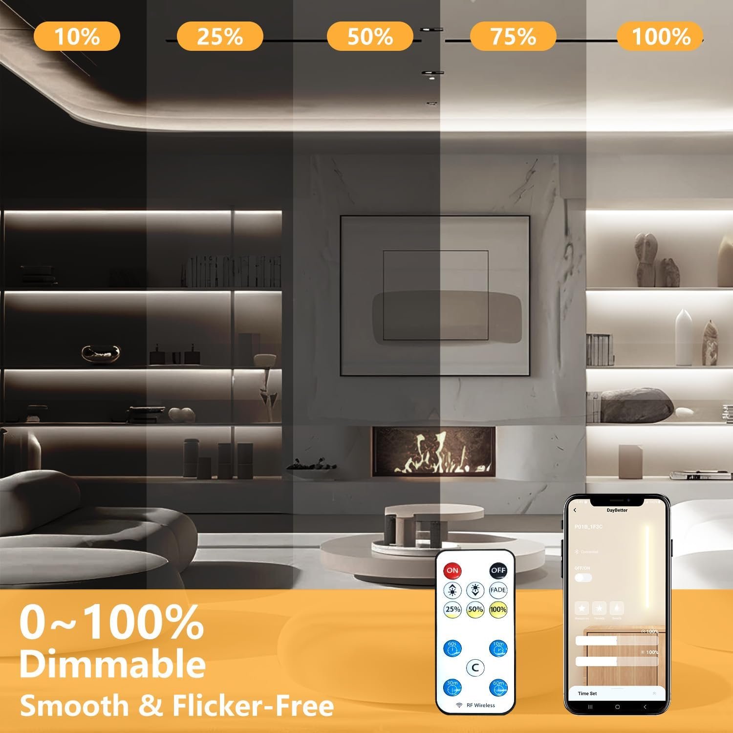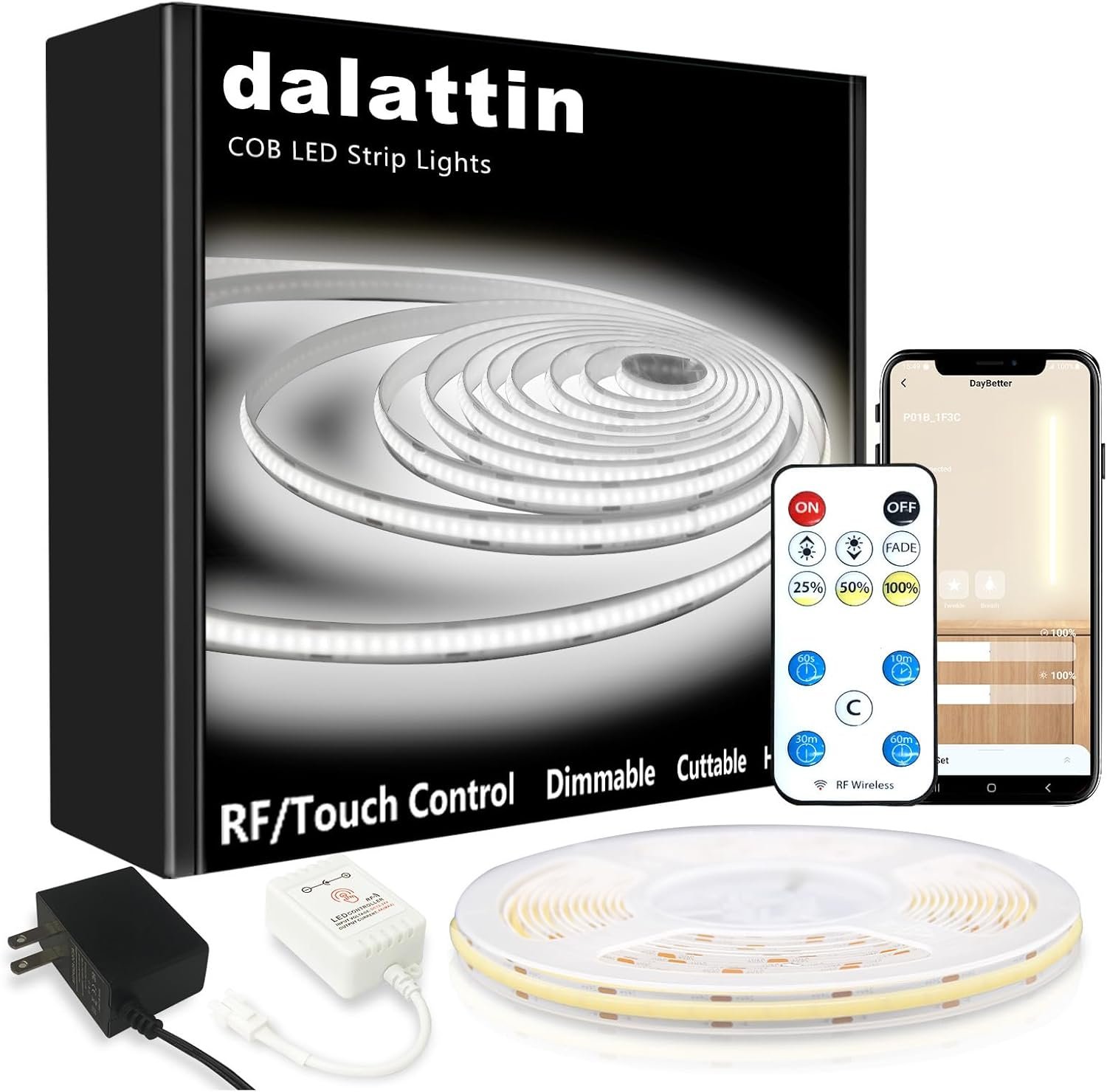 Convenient Control Options: Control your COB LED strip light effortlessly with the included RF remote and user-friendly app, providing a seamless experience with multiple functionalities for tailored lighting.