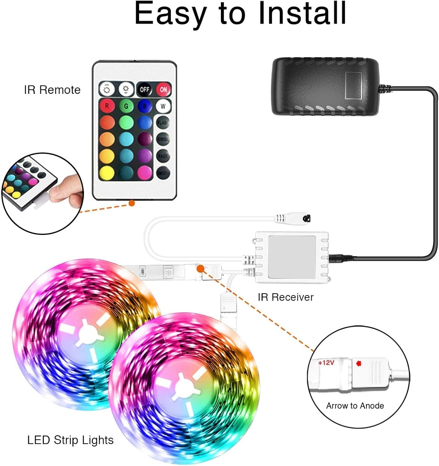 Wide Use and Self Adhesive: This led lights alexa compatible is very suitable for bedroom, living room, kitchen, tv, valentine decor or other indoor decoration. The adhesive of the led lights can be fitted on any dry and flat surface. Please test the led light strip before installation. Note: Two strips of light tape share a single controller.