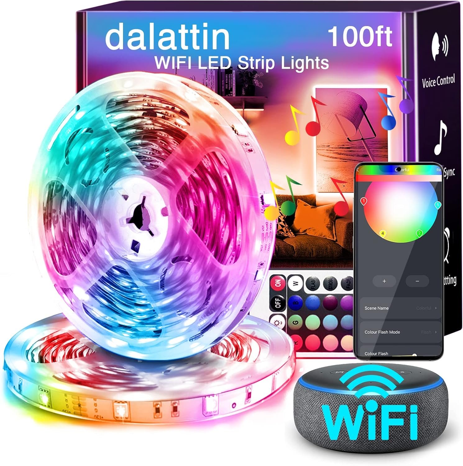 dalattin wifi led strip lights can work with Aelxa and Google Home;Using voice control to liberate your hands to control the lights;Adjustable brightness and multiple colors enable you to DIY as your like;Dim the light and set a favorite color by remote controller