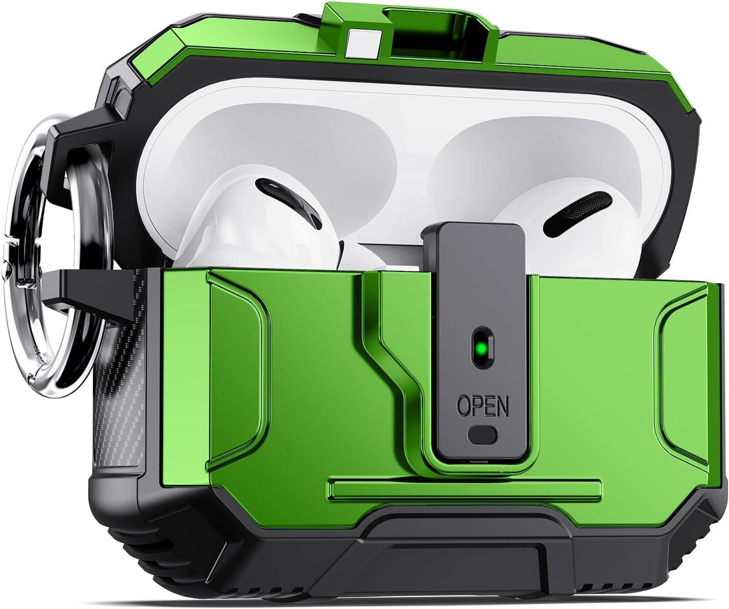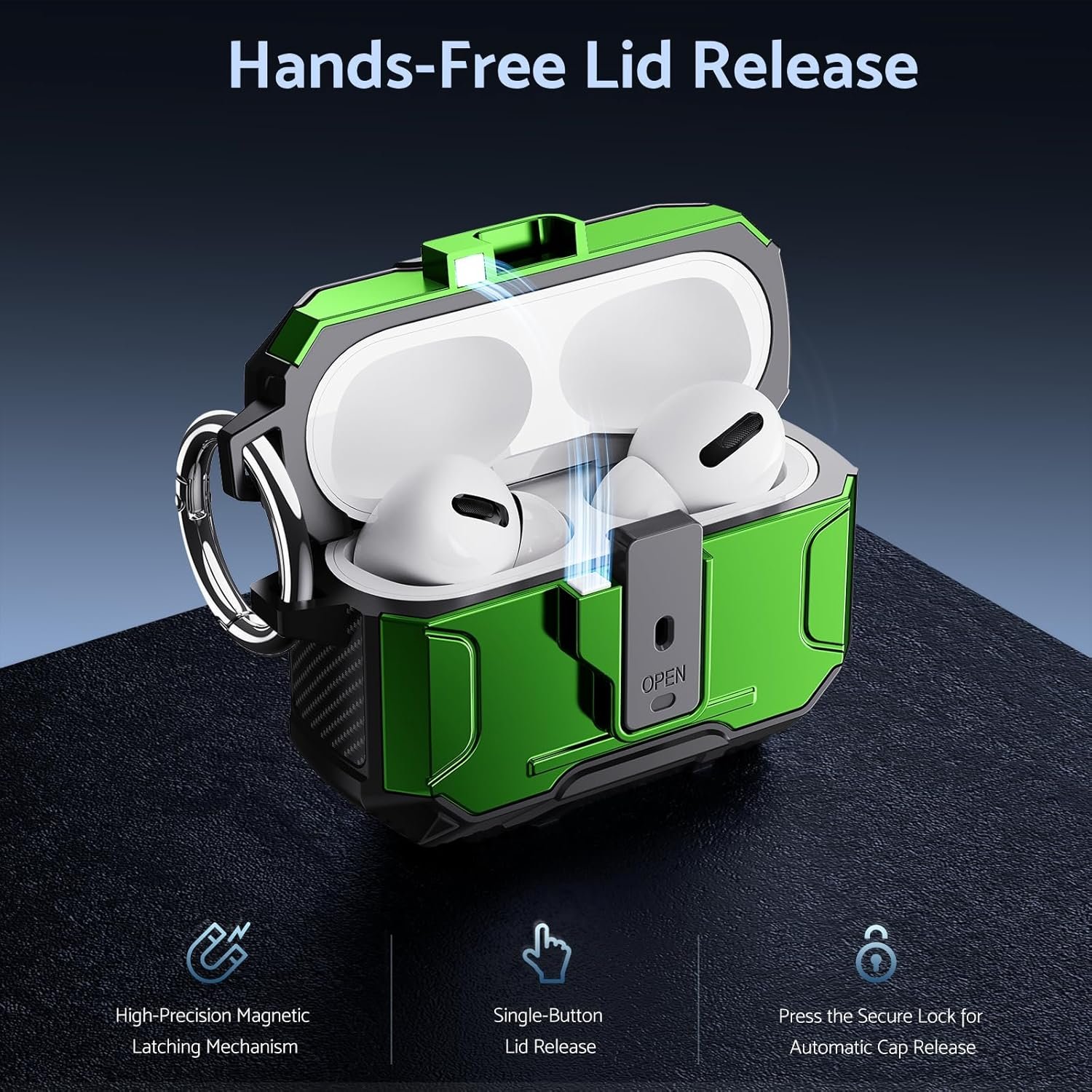【Upgraded Convenient Opening Design】 The lockable function can firmly fix the upper cover of the shell, and you can easily open the top cover with one click. A magnetic mechanism ensures that the Airpods Pro 2 case opens automatically while the case remains securely closed.