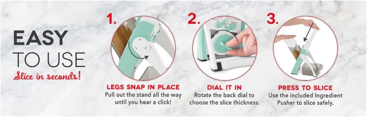 PERFECT GIFT: The perfect wedding or new home gift, the mandoline’s small size takes up little counter or cupboard space, and is a great addition to anyone’s kitchen.
