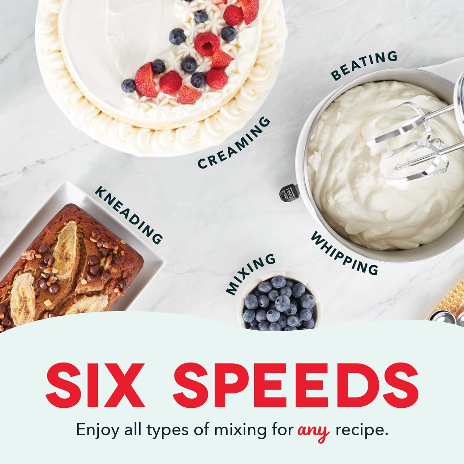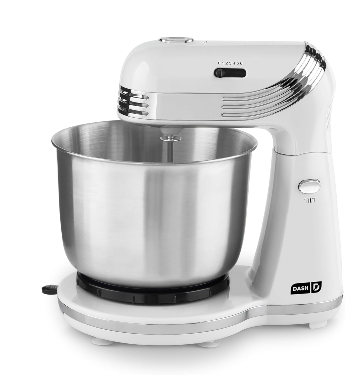 Dash Stand Mixer (Electric Mixer for Everyday Use): 6 Speed Stand Mixer with 3 qt Stainless Steel Mixing Bowl, Dough Hooks & Mixer Beaters for Frosting, Meringues & More – White