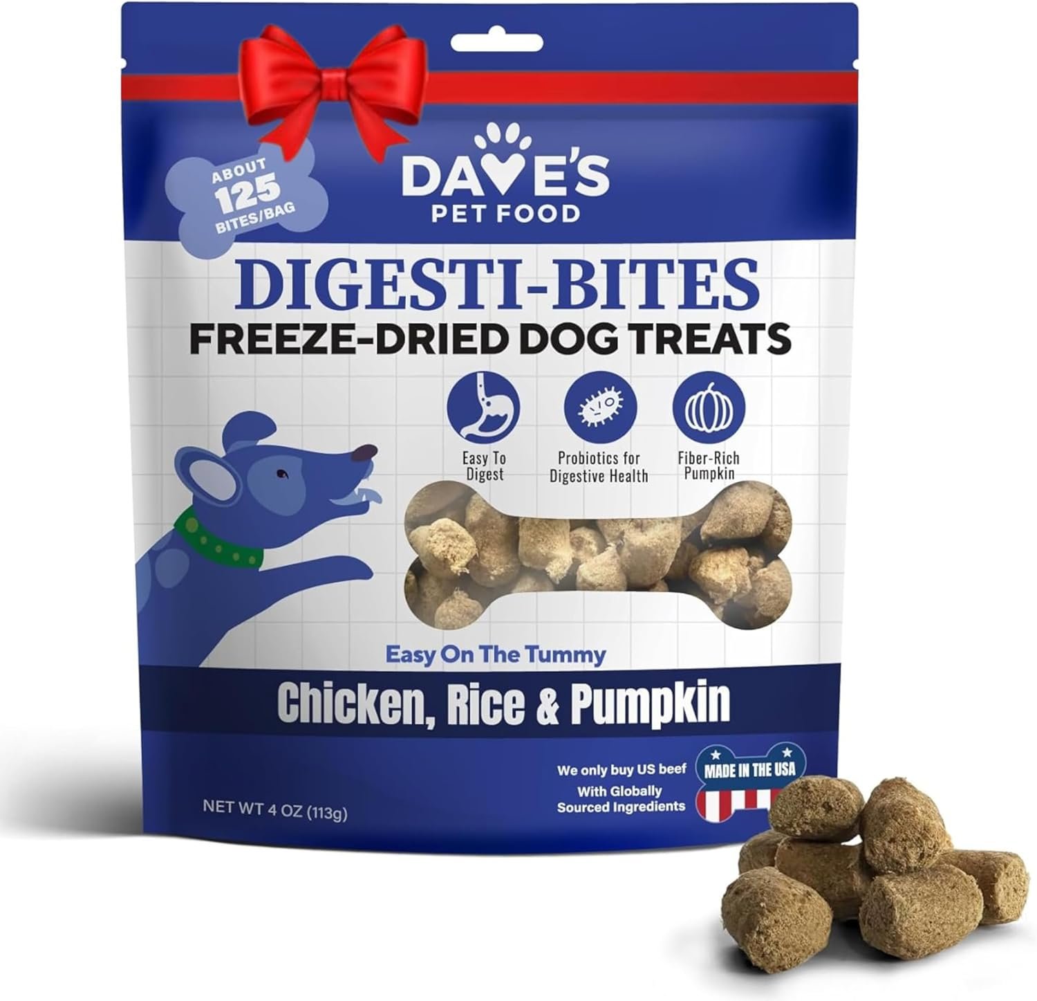 EASY-TO-DIGEST TREATS WITH PROBIOTICS FOR GUT HEALTH. Fiber-rich pumpkin soothes upset tummies and is great any time as pumpkin dog treats, or during diarrhea or constipation. Live probiotics for dogs digestive health.
