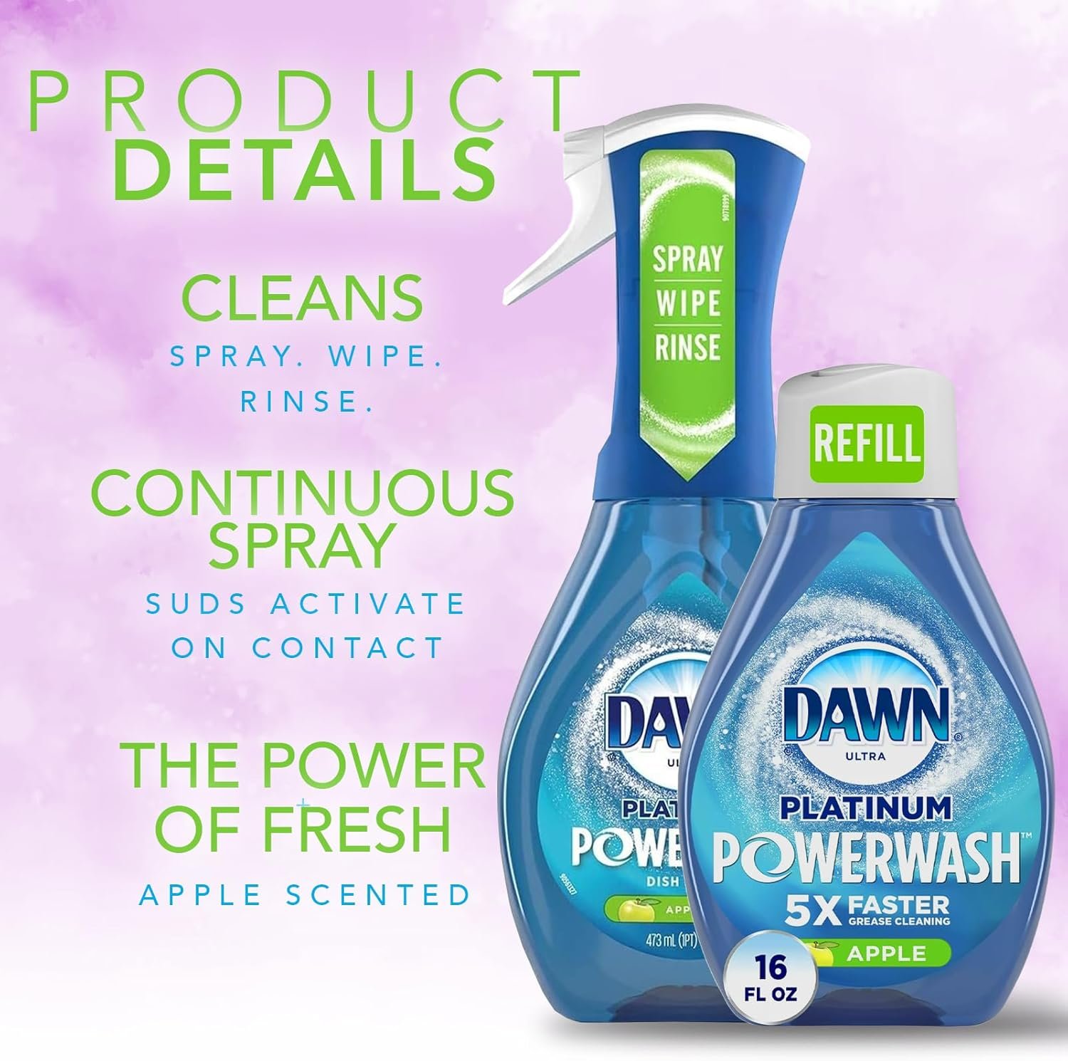 Dawn Powerwash Spray gets dishes done faster in 3 easy steps: just spray, wipe, and rinse to cut through grease 5x faster (vs Dawn Dish Soap Non-Concentrated)