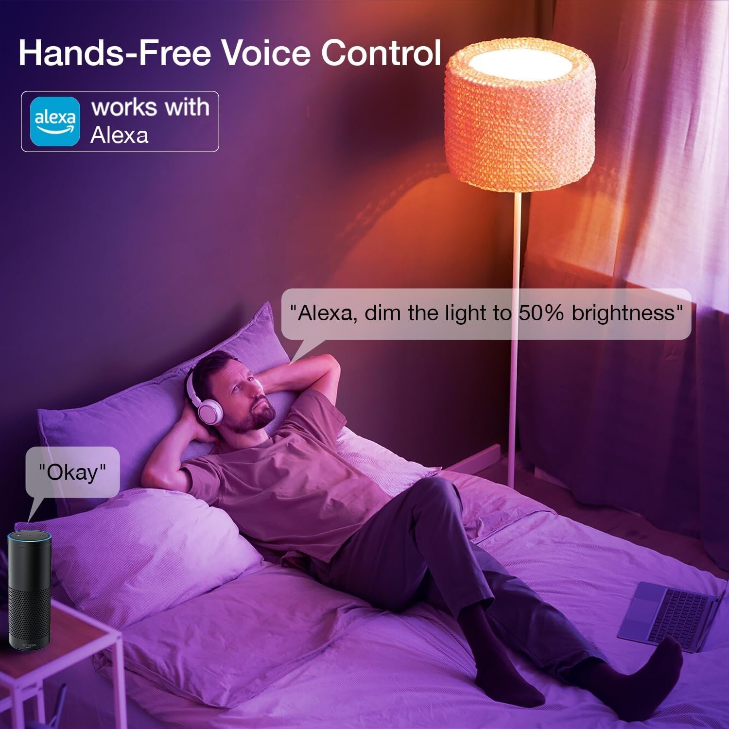 【Voice Control】DAYBETTER smart light bulbs that work with Alexa. You can use simple voice commands to easily turn on/off the lights, change the light color, and dim the brightness. Our Alexa light bulb is easy to install and no hub and subscription are required.