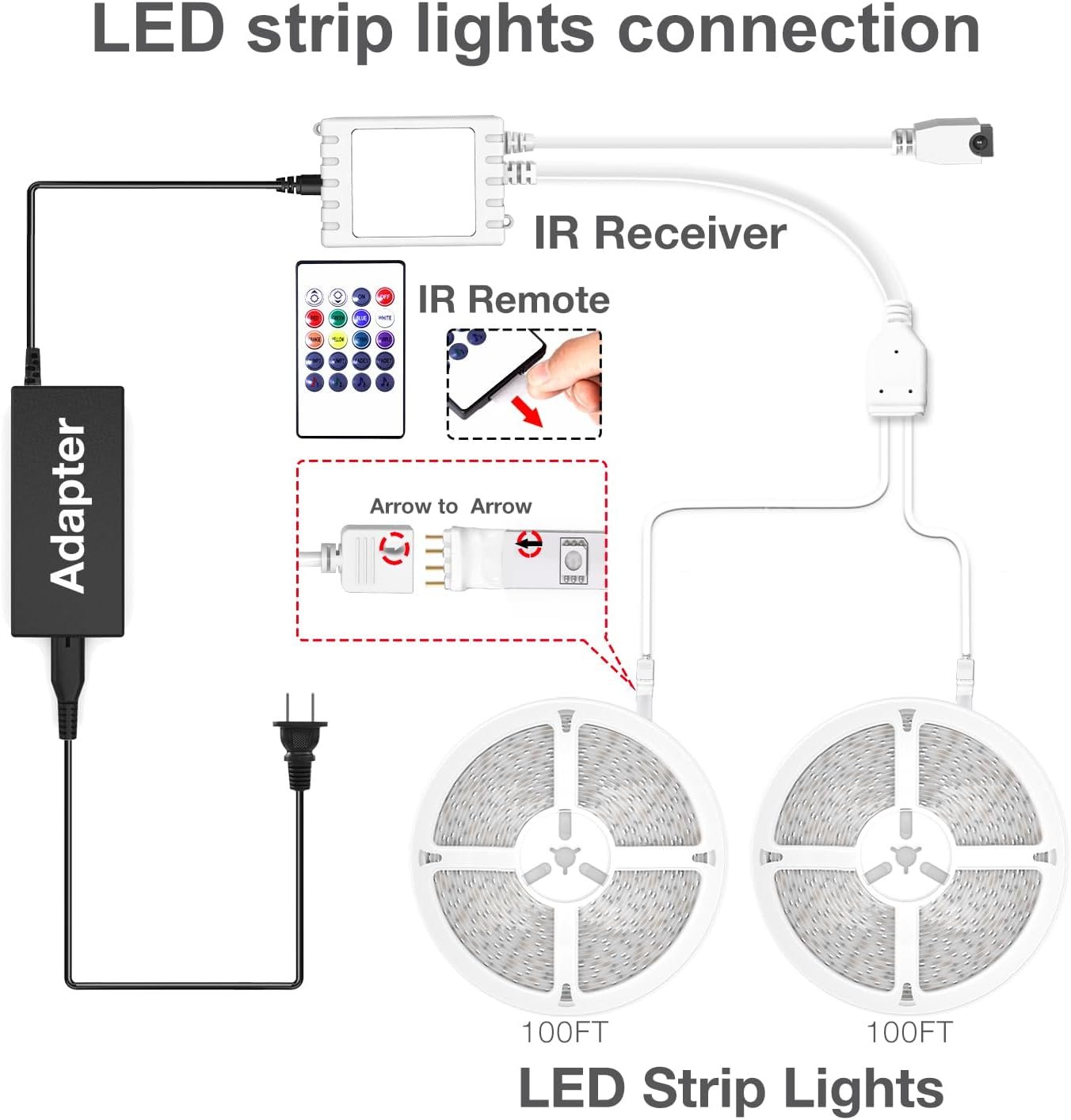 Smart APP and IR remote control;The 200 feet led strip lights support both app DAYBETTER lighting and 24 keys ir remote for control, Different modes can be chosen, like Flashing, Quick, Jump, Fade, etc. You can choose to control 16 million colors, Tips: NOT Be suitable for Alexa