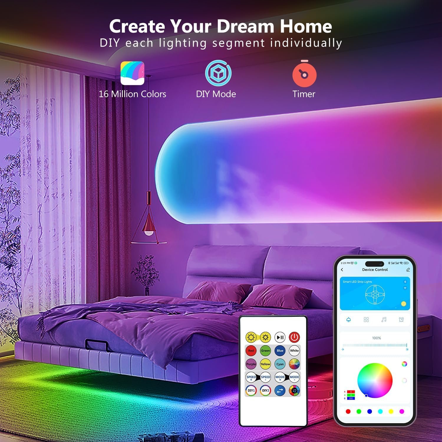 Upgraded Segmented Color Control: The color changing led lights is divided into 20 segments which can be controlled individually. Adjust colors and brightness to your preferences, turning a single light to vivid colorful light show. Create your own lighting design and creative DIY in the App