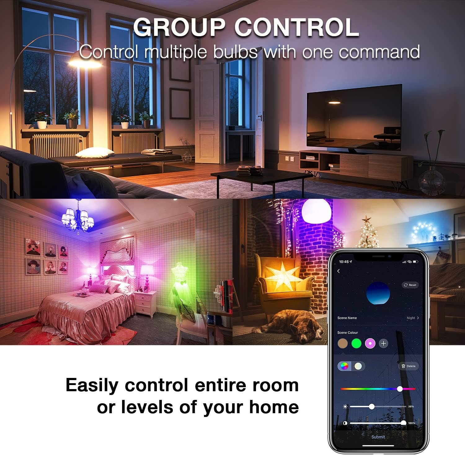 Tuya Smart Application : You can use the grouping feature to create groups for multiple bulbs, Can control the smart light bulbs anytime and anywhere through your mobile phone,create the atmosphere which you like, make your life more romantic and funnier