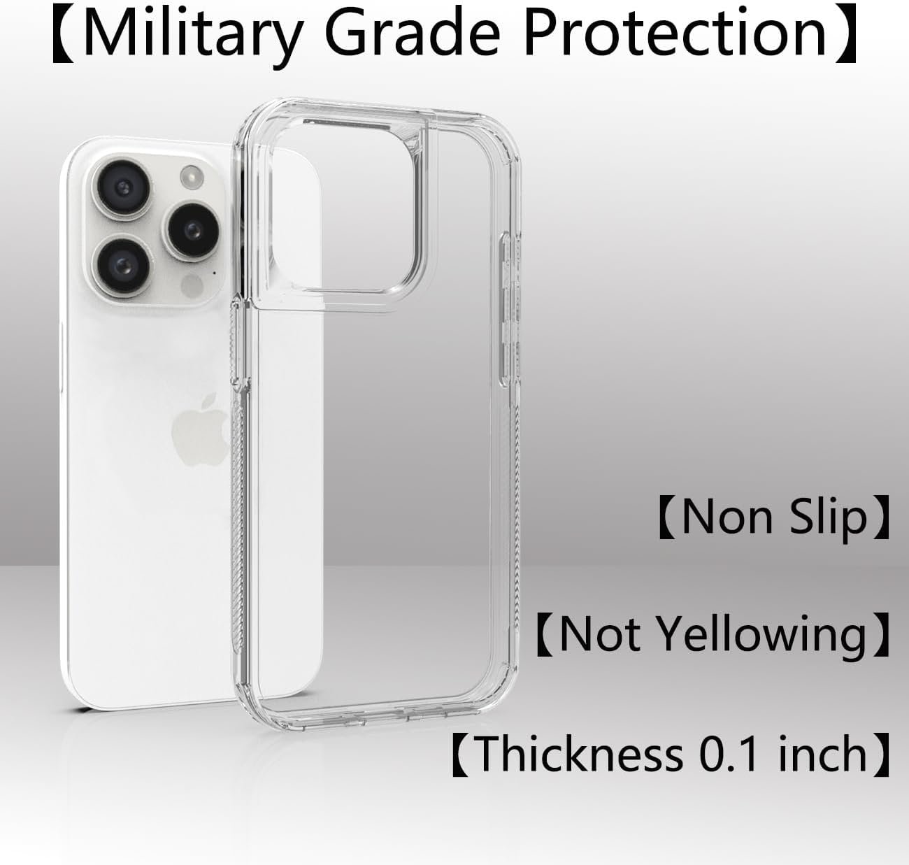 【Crystal Clear & Never Yellow】Using high-grade Germany Bayer’s ultra-clear TPU material and Nano antioxidant layer, this iPhone 15 Pro Max Case can block up 99.9% ultraviolet rays, stains, fingerprints and sweat effectively, keeping the longer-lasting clarity and never yellow over time,perfectly shows the original color of your phone.