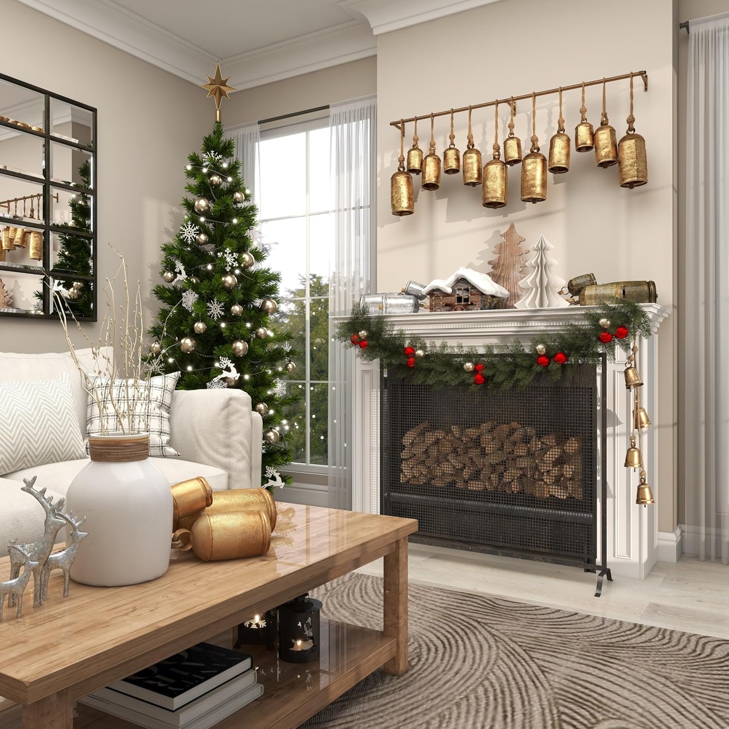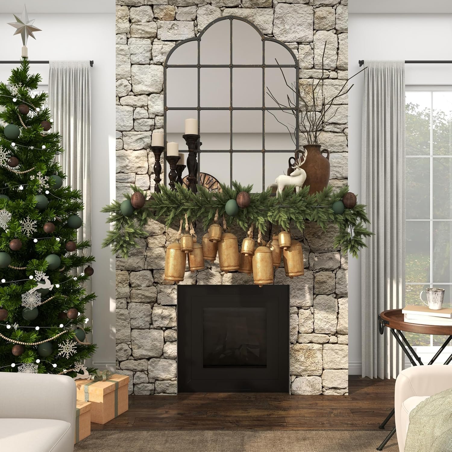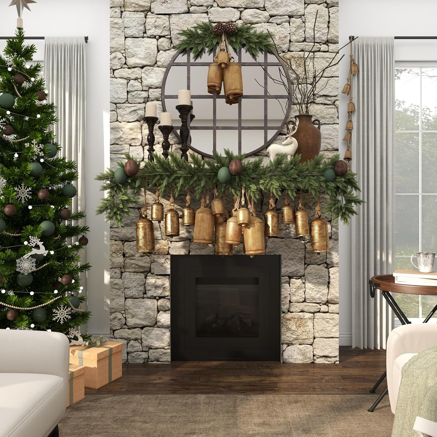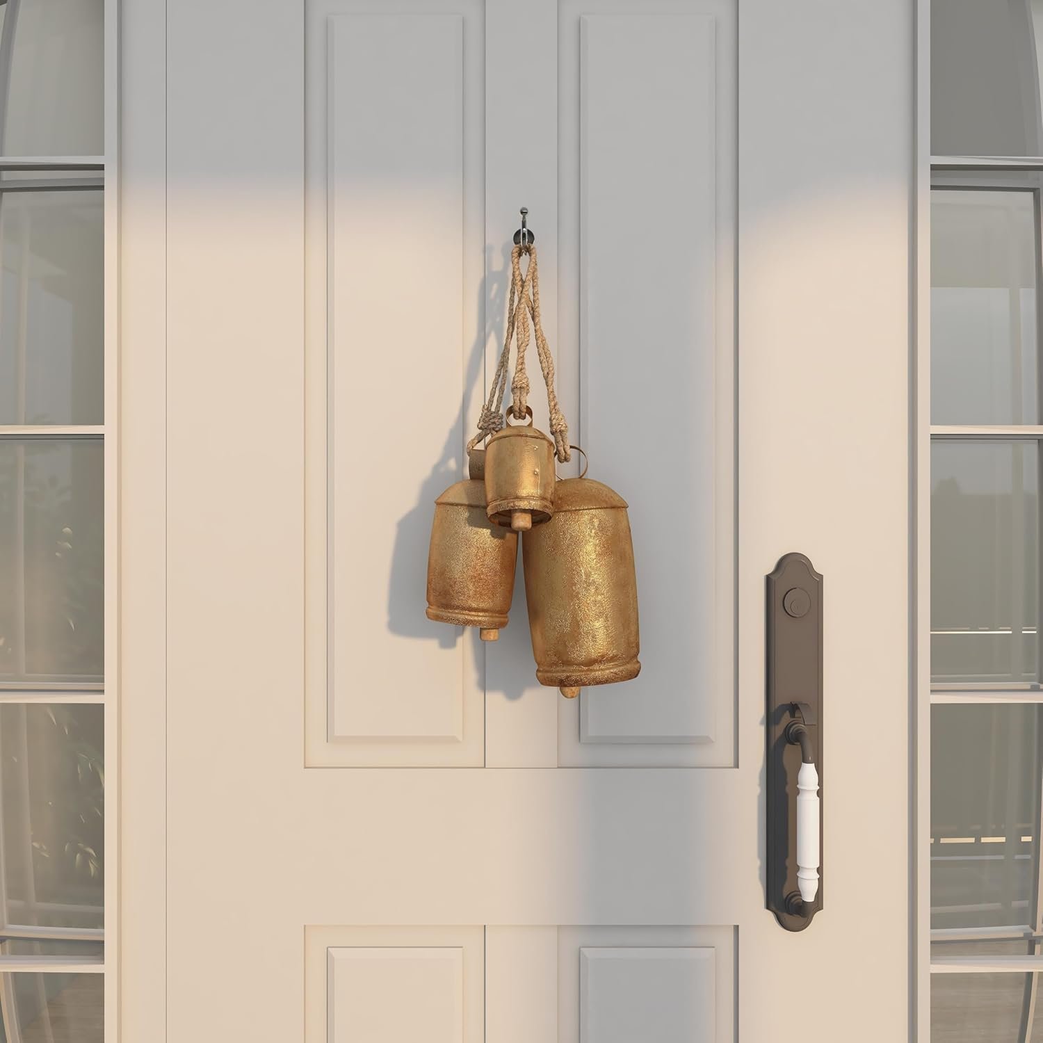 METAL HOME DECOR BELLS: Gold indoor outdoor decorative cow bells set is crafted from iron and jute rope materials, ensuring both durability and style
