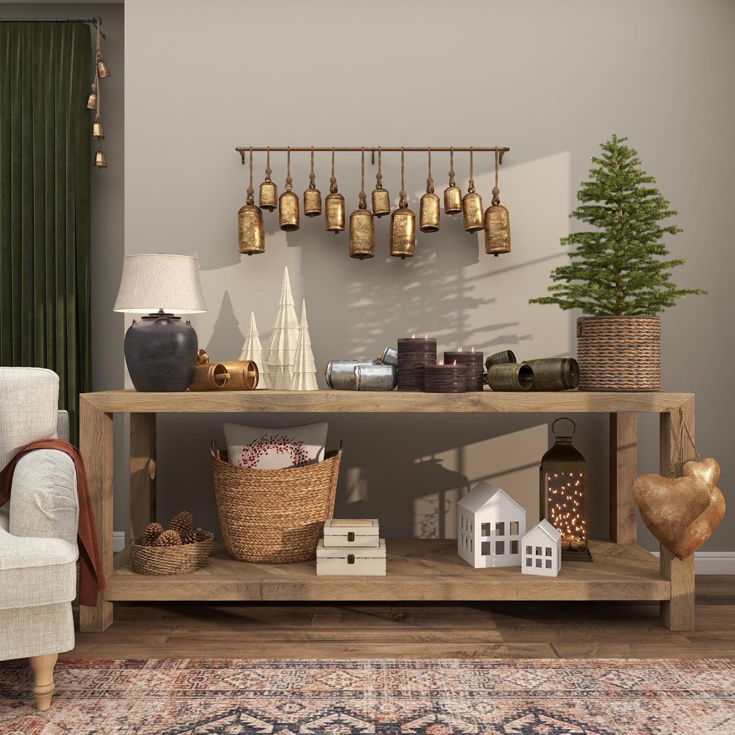 RUSTIC BELLS HANGING ON A ROPE: Designed with rugged beauty and an earthy charm, where natural simplicity, warmth, and organic materials create a wholesome atmosphere