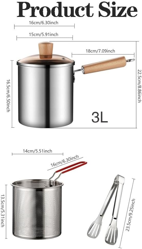★【Versatile Uses】: Deep fry pot with strainer is great for frying french fries, chicken nuggets, squid rings, tempura, shrimp and more, also the pot along can be used for boiling water, milk, tea, cooking pasta, noodles and more.This fryer is compatible with all kinds of stoves, such as gas stove, induction cooker, etc.