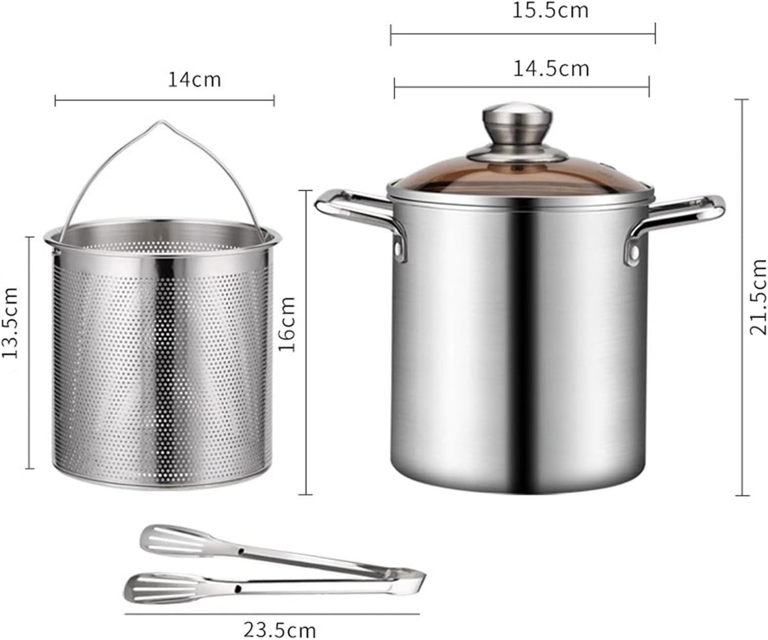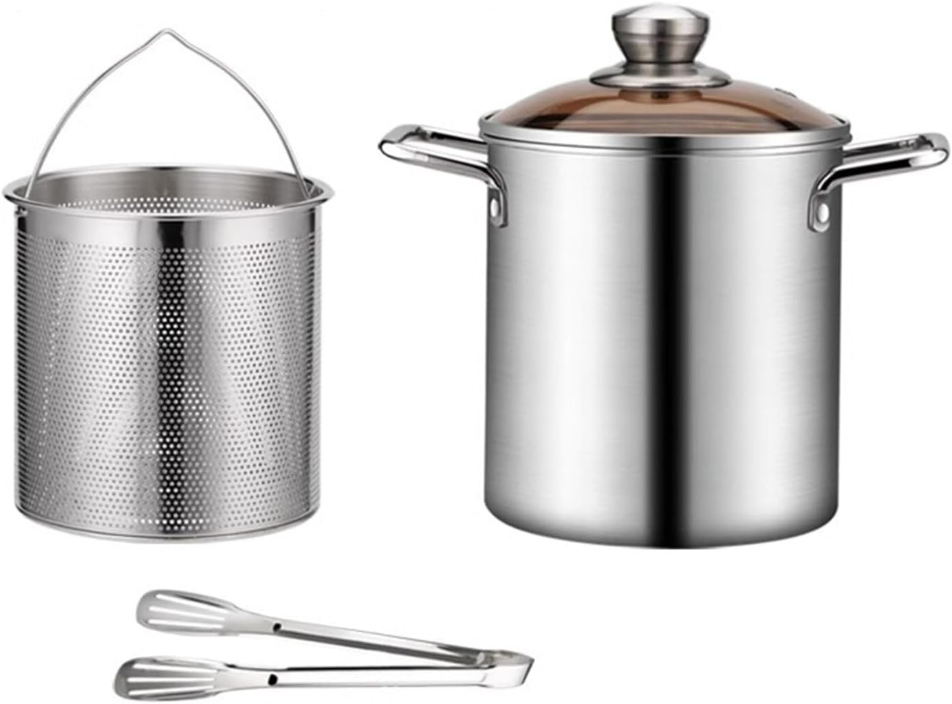 Deep Fryer Pot, Small Deep Fryer with Basket Stainless Steel, Deep Fry Pot with Strainer Basket & Glass Lid, Japanese Tempura Fryer Pot for Kitchen Fries Chicken