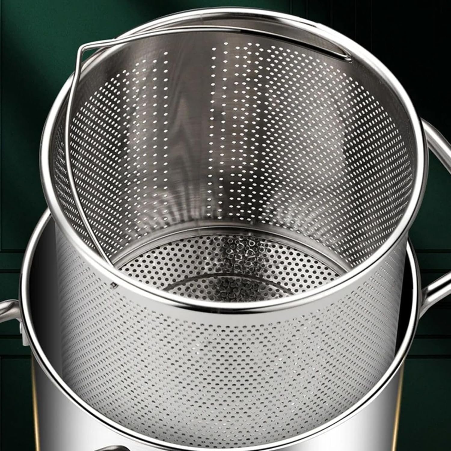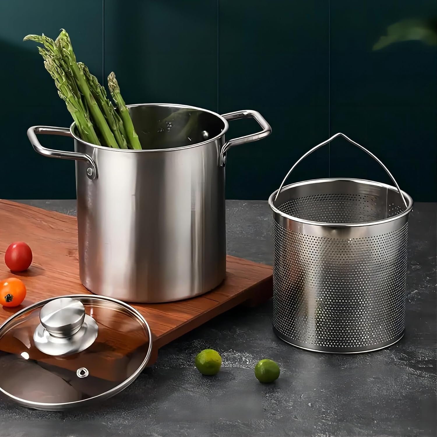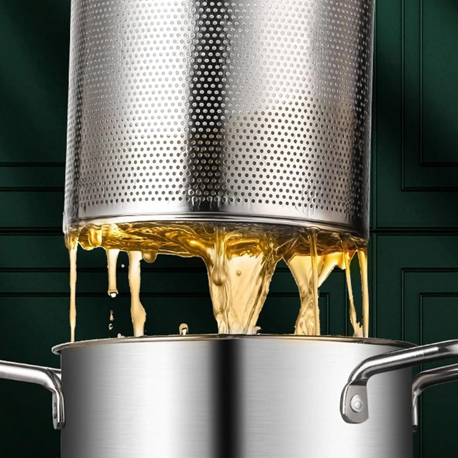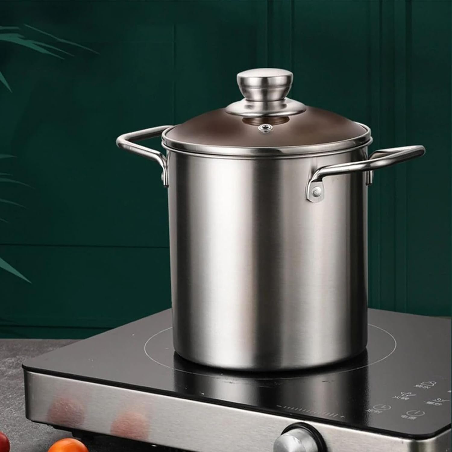 Stainless Steel Deep Frying Pot: This deep fryer pot is precision crafted from high- quality food grade 304 stainless steel, sturdy, heat resistant, evenly heated, and heats up quickly, ensuring a reliable and long- lasting cooking experience