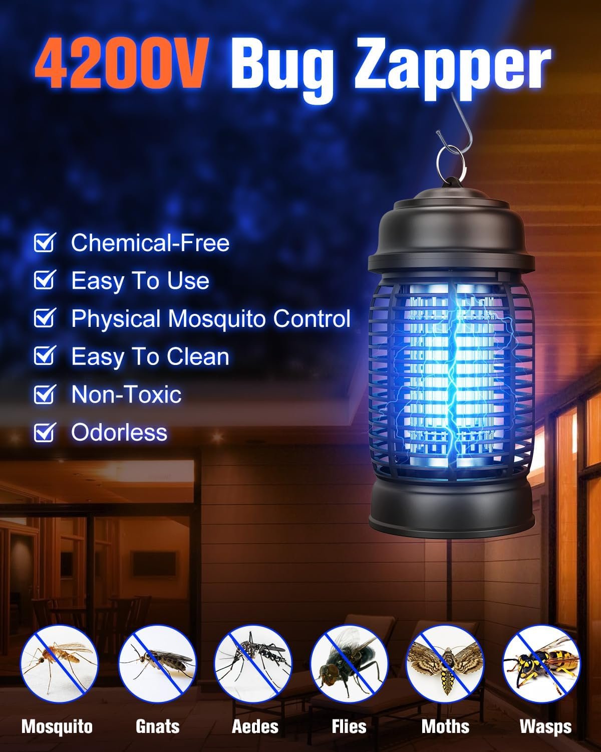 ⚡Suitable for Indoor and Outdoor USE:The DEEZEE bug zapper indoor captures and kills mosquitoes, fruit flies, wasps, beetles, moths, Aedes, mosquitoes, and mosquitoes with a wide coverage area of over 2100 sq. ft. Great for indoor and outdoor mosquito repellent. Such as front porch, backyard, patio, swimming pool, deck, garage, kitchen, living room, bedroom, farm, lawn, garden, etc.