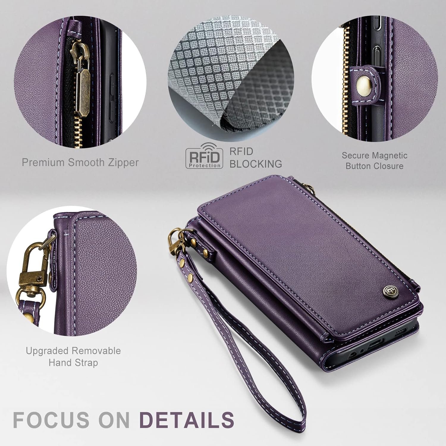 3.【All-in-One Wallet Design】: Multifunctional zipper pocket pouch + phone case in one with rfid blocking function. With magnetic mini buttons snap flip closure, include card holder & zipper pocket & phone shell part,all-in-one design allows you carry this case go outside without carrying your bulky wallet,suitable for women & men