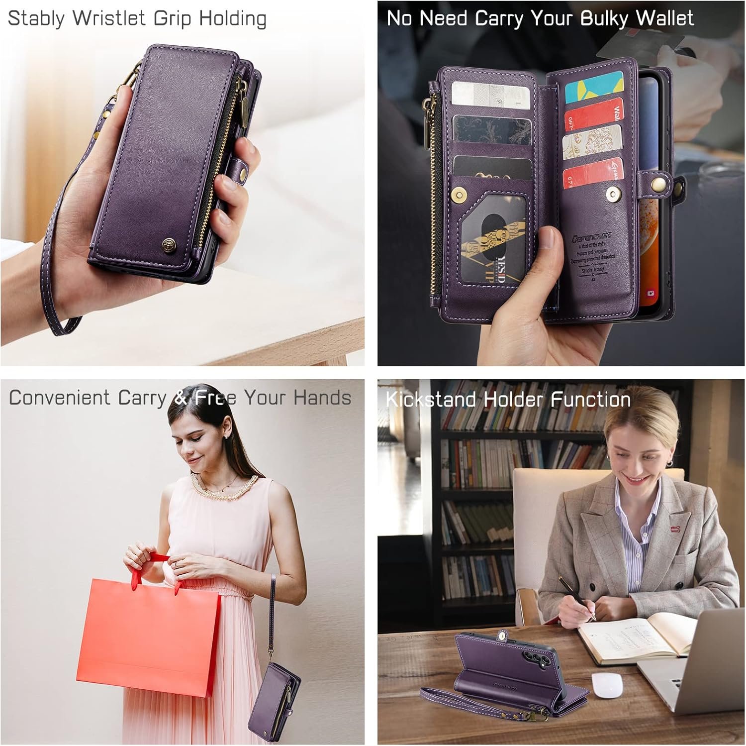 Customers like the quality, color, and card slots of the cell phone case. They mention it’s well-made, keeps their phones in good condition, and has a great design. Some also like the functionality and that it holds their phones well. However, some customers disagree on the fit and zipper closure.