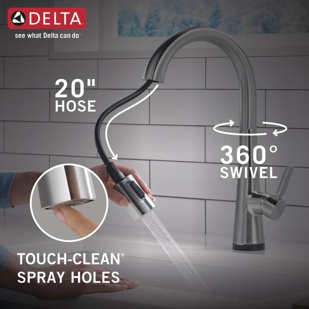 Delta Faucet Monrovia Touch Kitchen Faucet Brushed Nickel, Kitchen Faucets with Pull Down Sprayer, Kitchen Sink Faucet, Delta Touch2O Technology, Lumicoat Arctic Stainless 9191T-AR-PR-DST