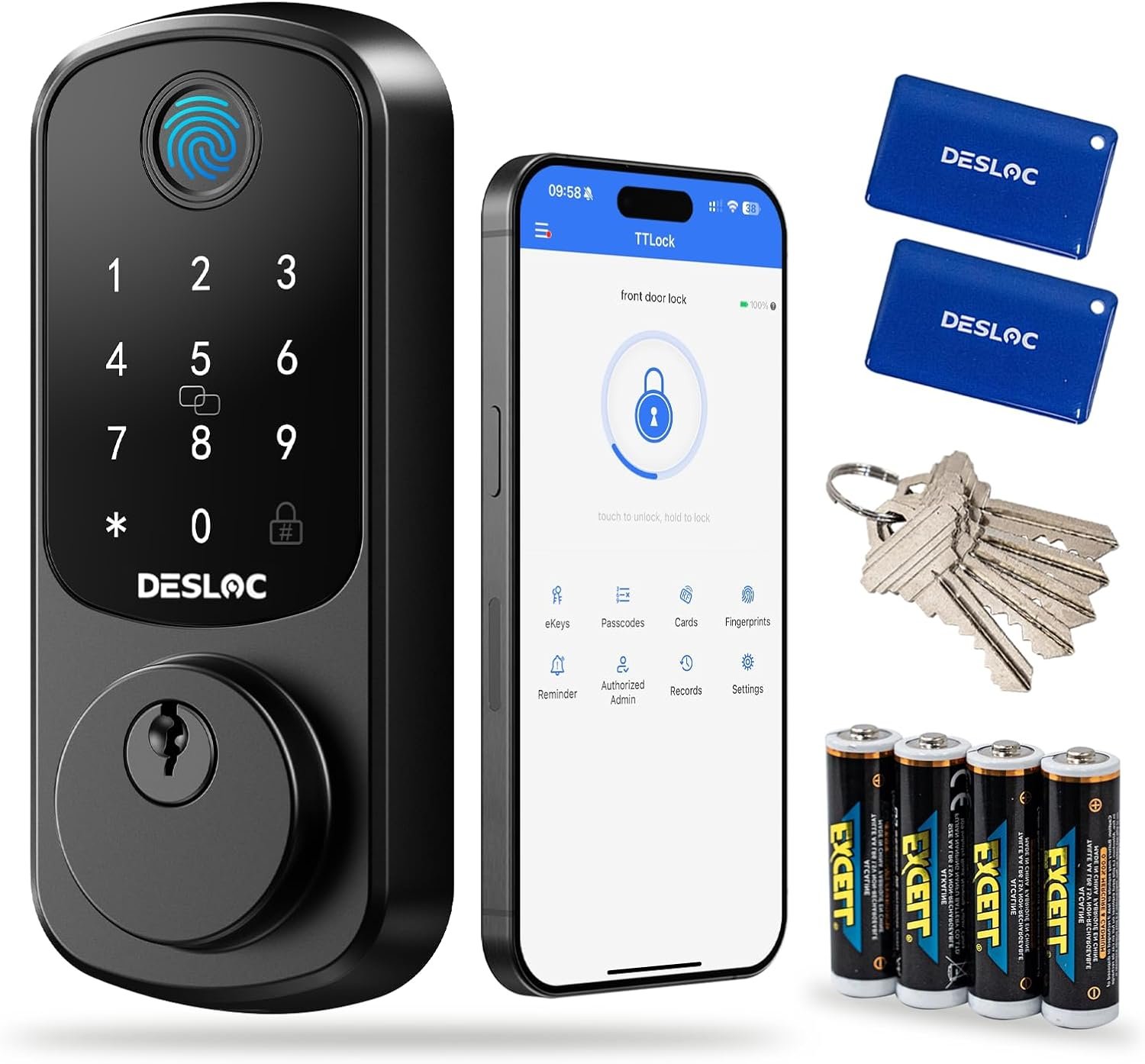 ๐”๐ง๐ฅ๐จ๐œ๐ค ๐ฐ๐ข๐ญ๐ก ๐„๐š๐ฌ๐ž & ๐’๐ž๐ฅ๐Ÿ-๐ฅ๐ž๐š๐ซ๐ง๐ข๐ง๐  ๐€๐ˆ: Unlock with fingerprint recognition, PIN codes, 5 physical keys, app control, eKey, fobs, or use your voice with Alexa/Google Voice Assistant. For Deadbolt Smart Lock B200, the speed of fingerprint recognition is less than 0.3s. Next-generation fingerprint unlocking technology, upgraded through AI learning and validated by millions of users.