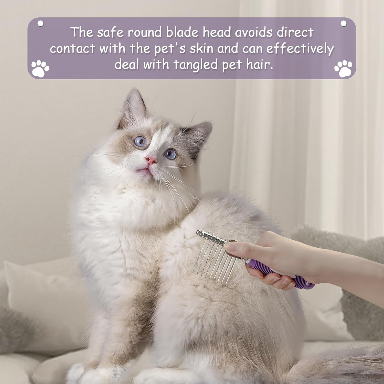 Pet-Friendly & Safe – Safety is our top priority. The rounded edges and gentle bristles of our detangling tool are pet-friendly, ensuring a comfortable grooming experience for your furry friend.