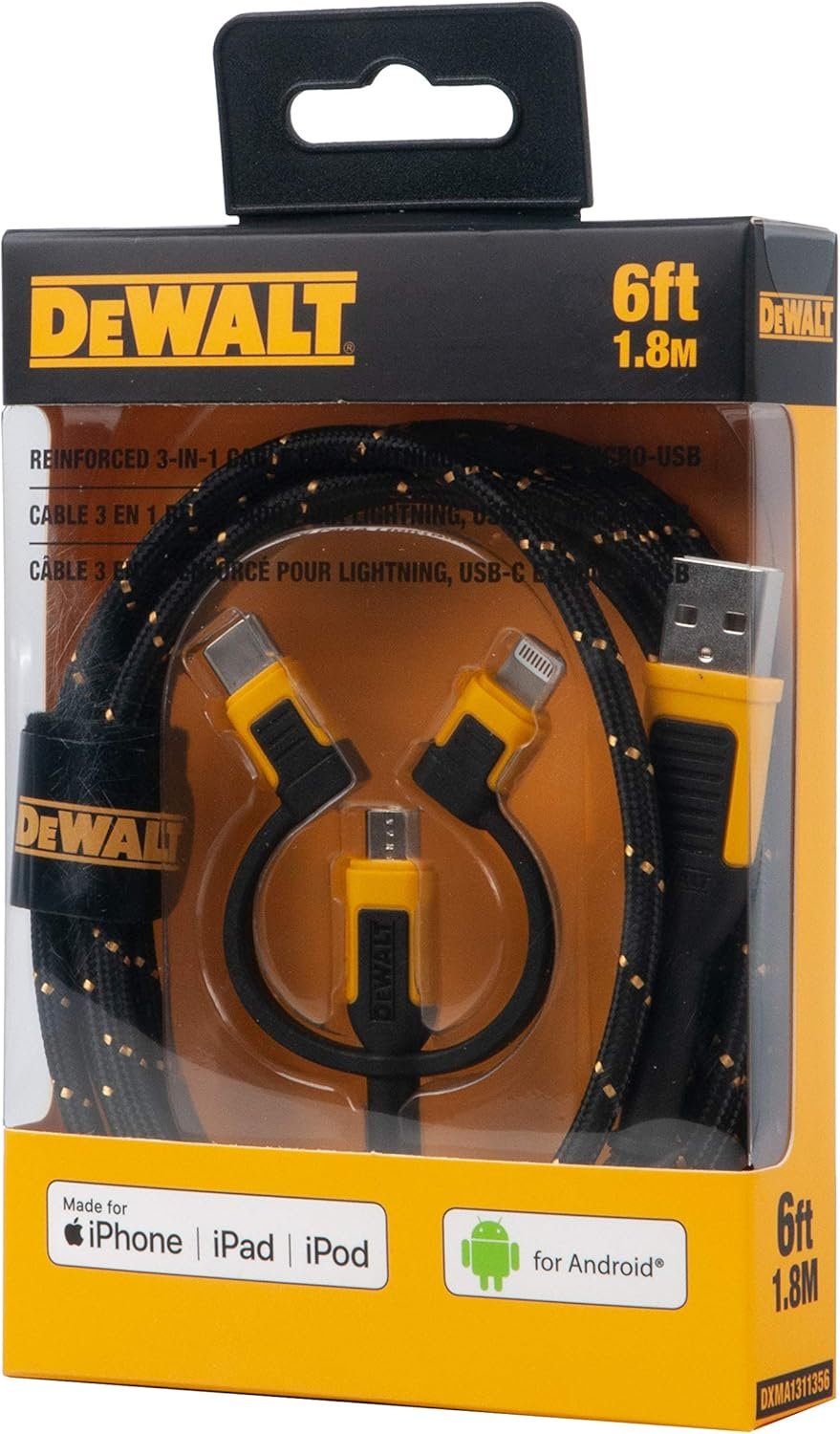 Keep Organized With Durable, Fixed Tethers — This three in one charging cable features tethered connectors that are well reinforced for longevity against repeated wear and tear on the jobsite