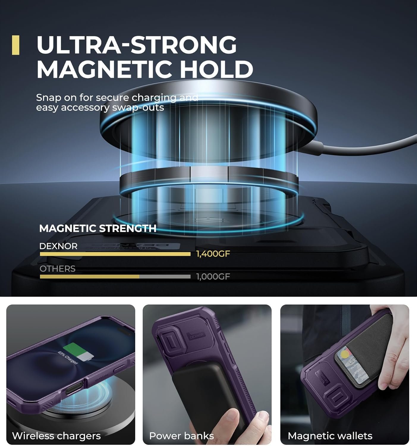 Mighty MagSafe power: With a magnetic hold of up to 1,400g, this rugged case keeps your phone securely attached to all MagSafe accessories. Whether it’s a wireless charger or a car mount, it ensures your phone stays put and safe in any situation.