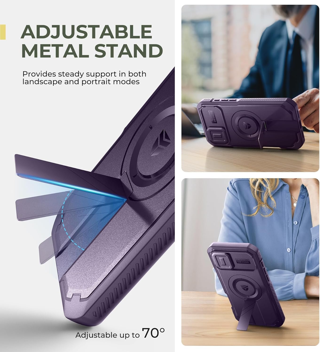 Adjustable metal kickstand: Made from superior aluminum alloy, the adjustable stand is incredibly sturdy and long-lasting. It holds your phone securely in both landscape and portrait modes, ensuring great stability and convenience for hands-free viewing.