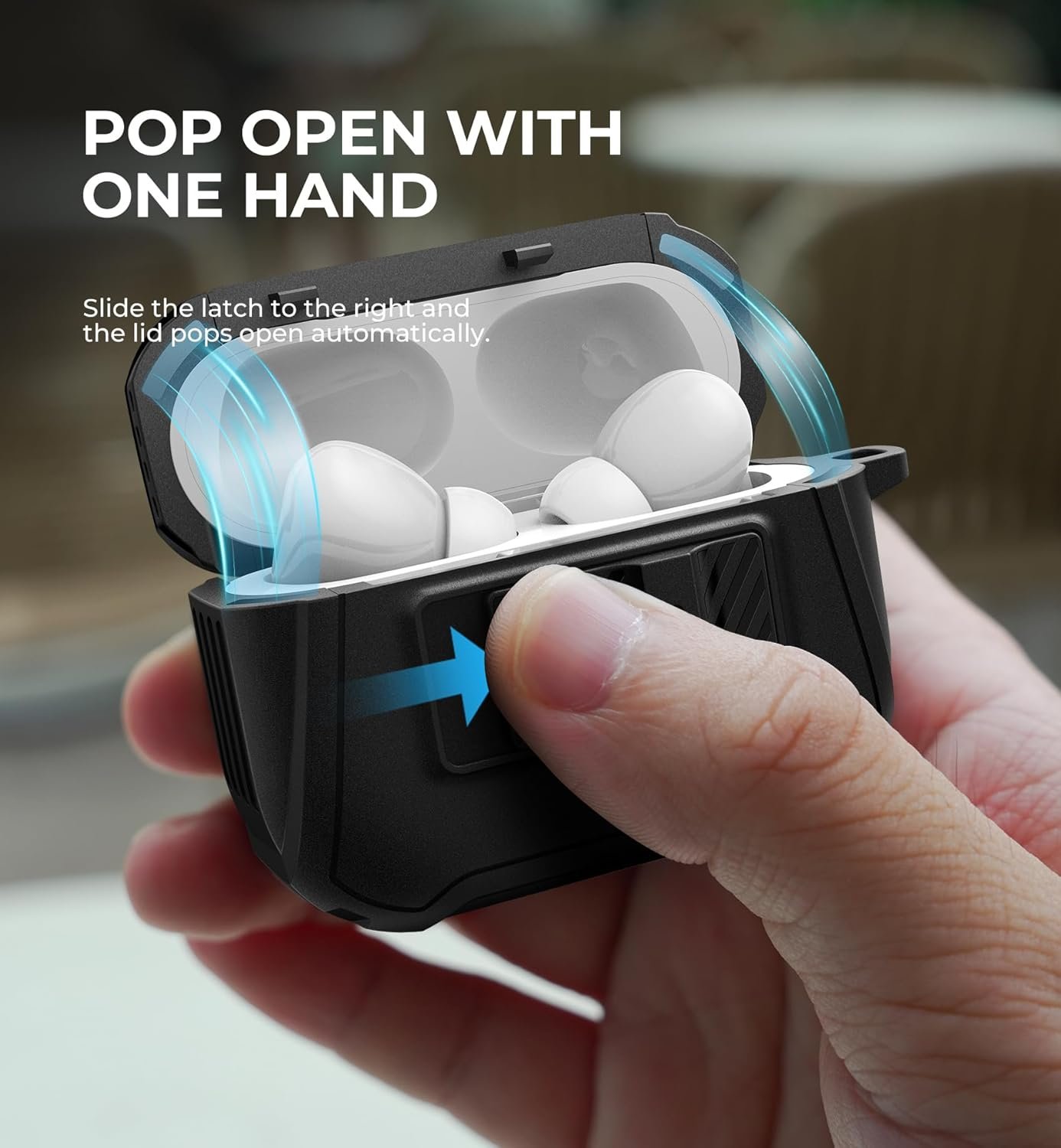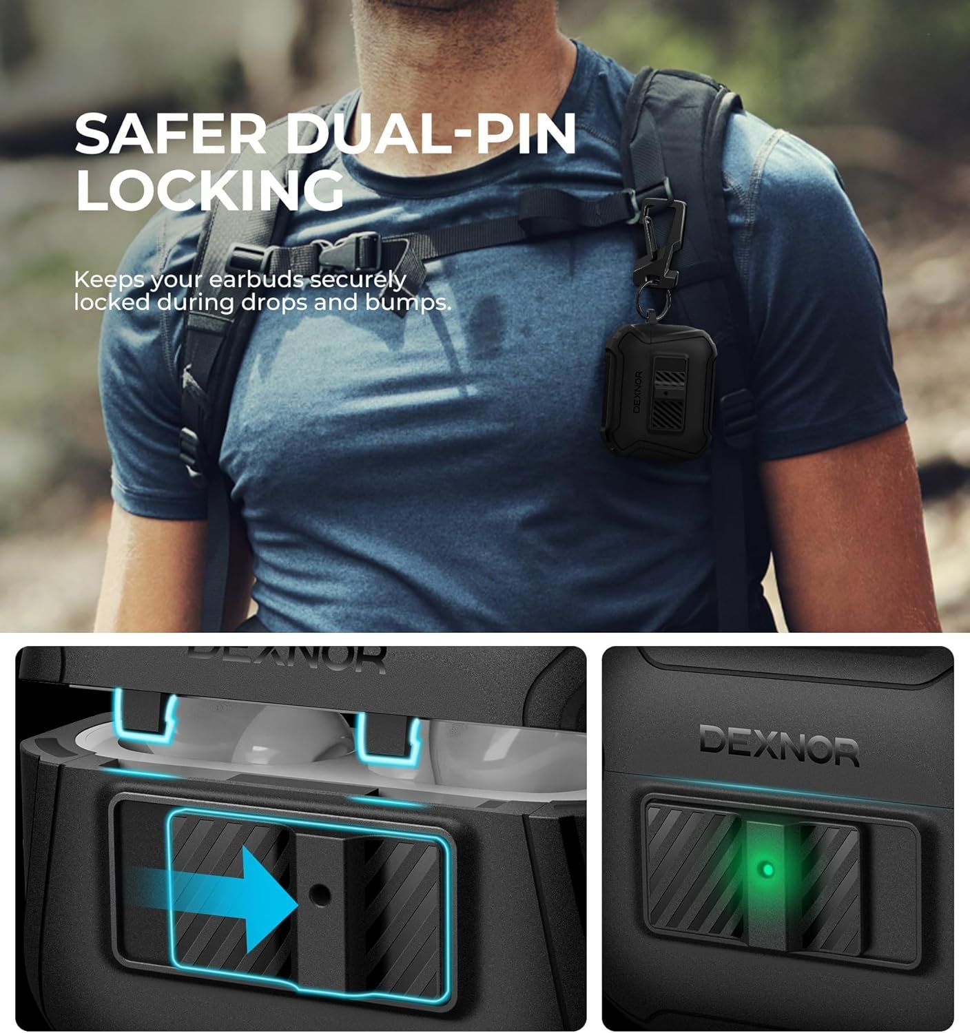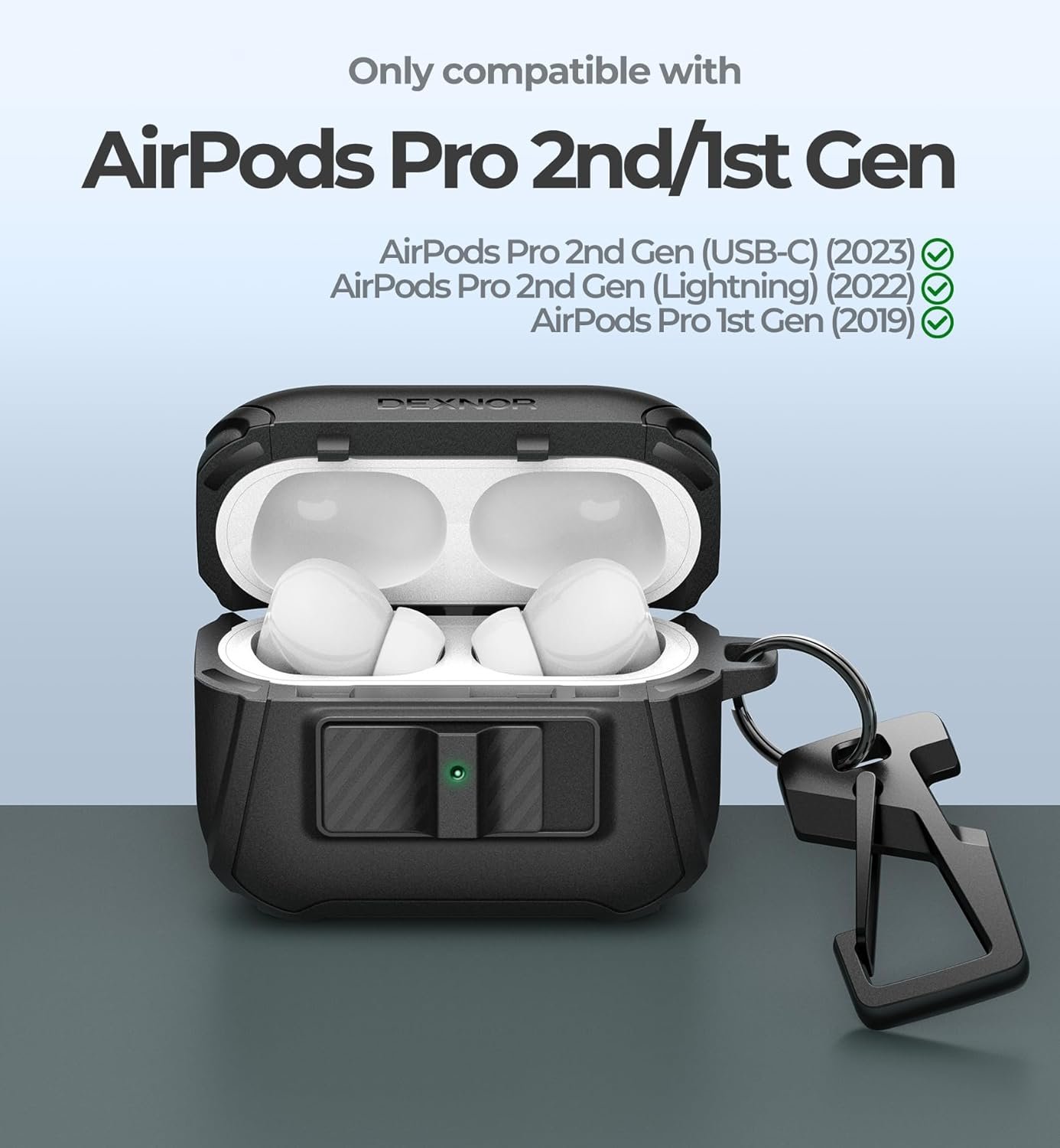 Safer locking mechanism: Never worry about your AirPods Pro flying out of the charging case again! This rugged case has a dual-pin latch that locks tighter than regular cases. It’s strong enough to keep your AirPods Pro securely closed even on a hard drop.
