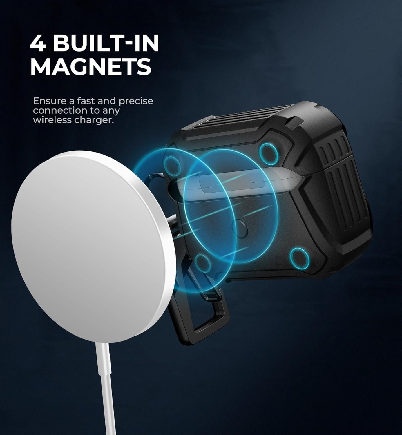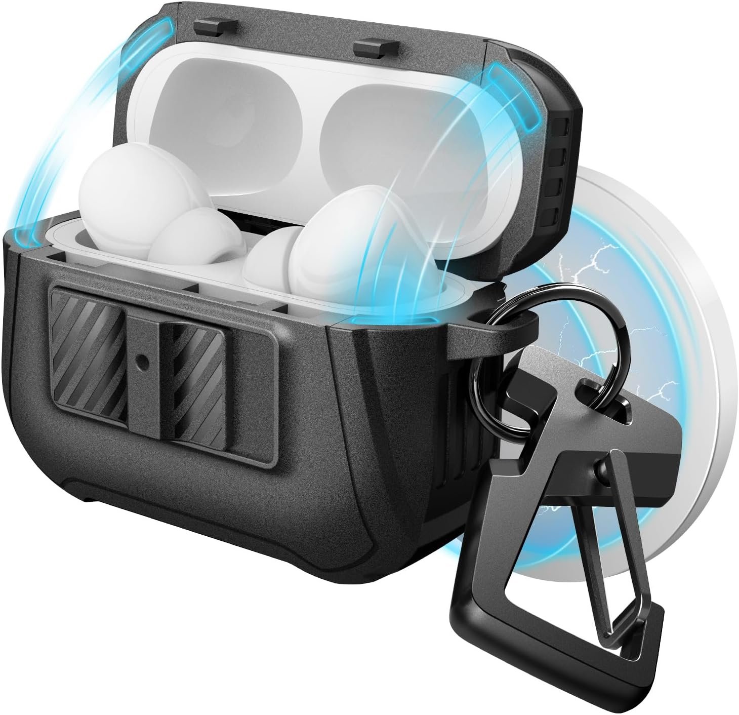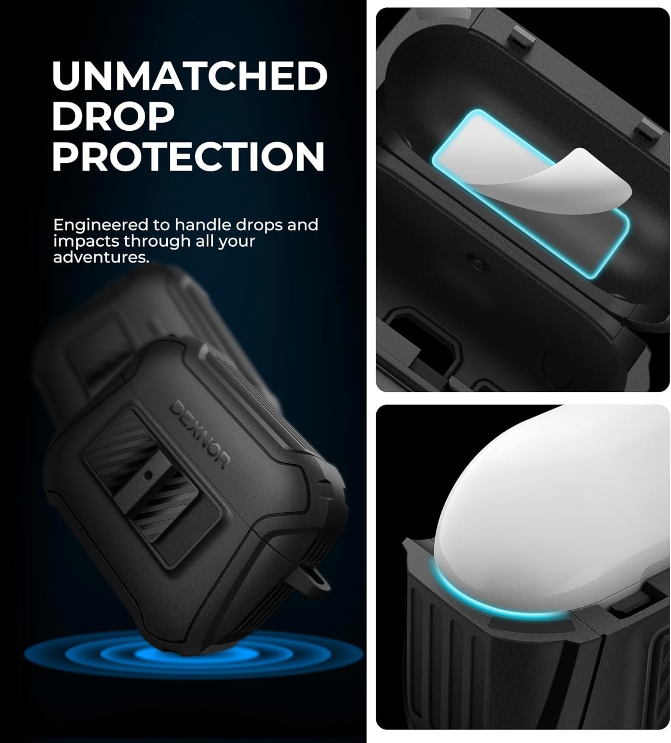 Safer locking mechanism: Never worry about your AirPods Pro flying out of the charging case again! This rugged case has a dual-pin latch that locks tighter than regular cases. It’s strong enough to keep your AirPods Pro securely closed even on a hard drop.