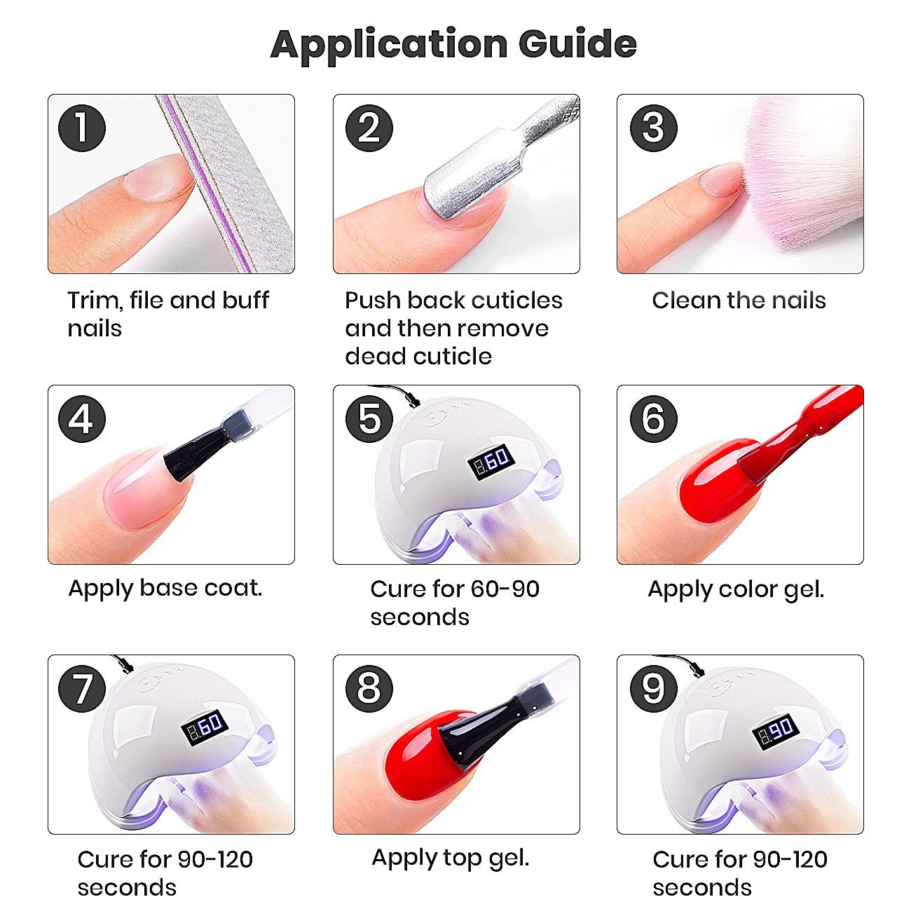 EASY TO APPLY & LONG LASTING:This soak off gel polish is easy to apply, no Chips and no Smudges, not peeling off easily. It could last for 21 days+ while matching with gel base and top coat.This gel nail polish need to be cured by nail lamp.We highly recommend 60 seconds curved with LED lamp