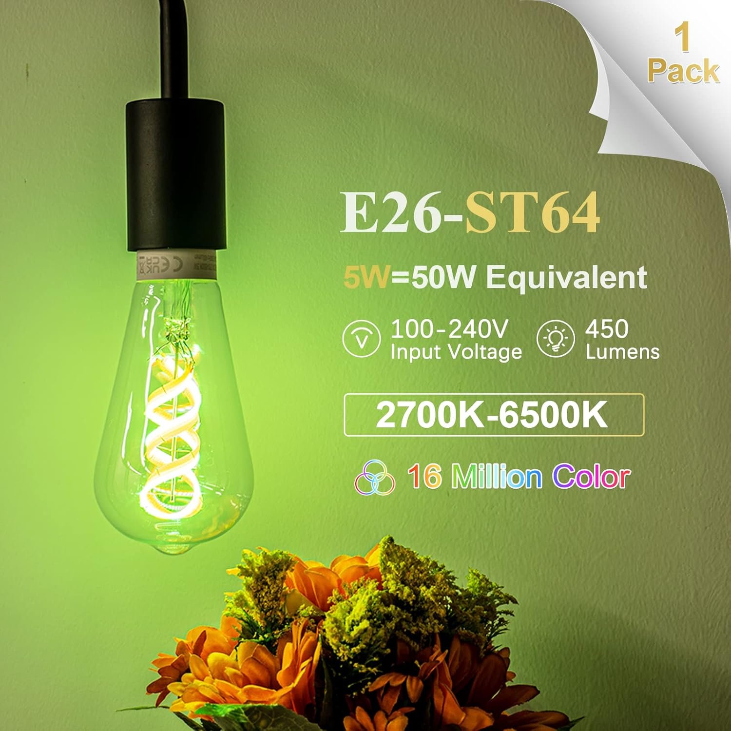 Easy to Setup: 1. Download the ‘Smart Life or Tuya’ App; 2. Screw-in & Connect the Vintage E26 Edison Smart bulb ST64 to 2.4Ghz WiFi via App; 3. Done, enjoy the bright smart lighting in your life! Quick and easy installation without bridge or calling an electrician. Not any hub required.