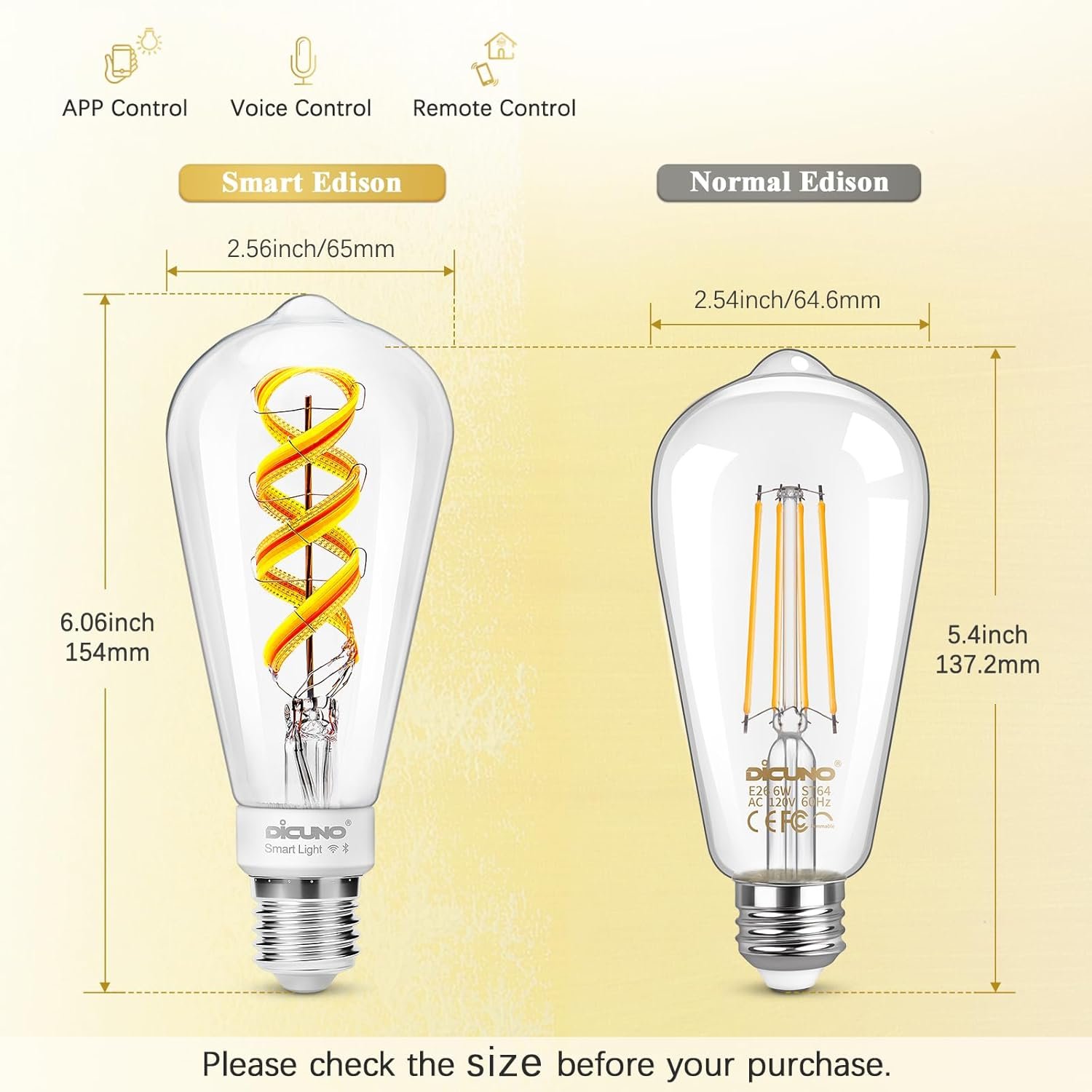 Smart ST64 Edison bulb will be a little longer than the normal ST64 bulb; please carefully check whether the bulb fits your light fixture size before purchasing.