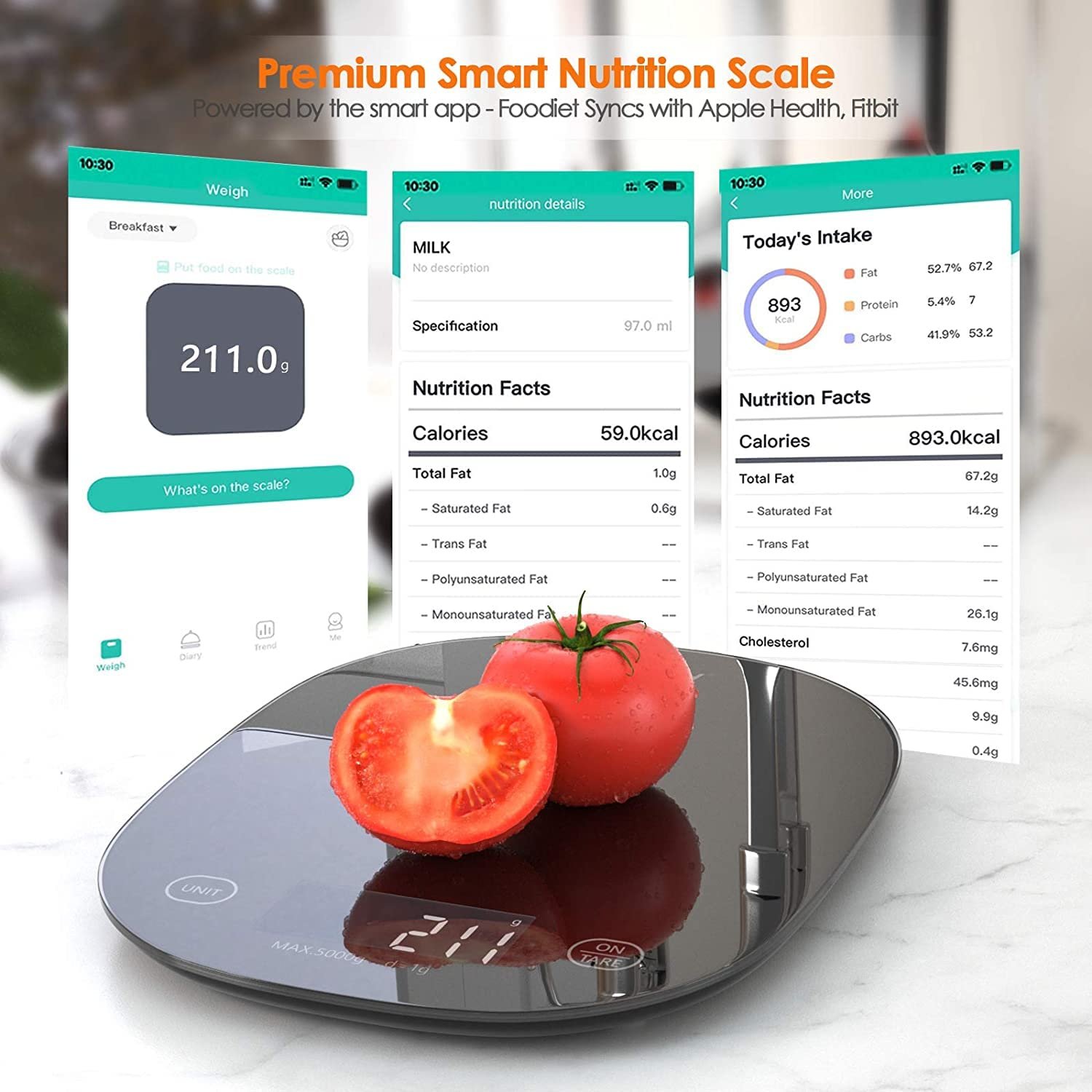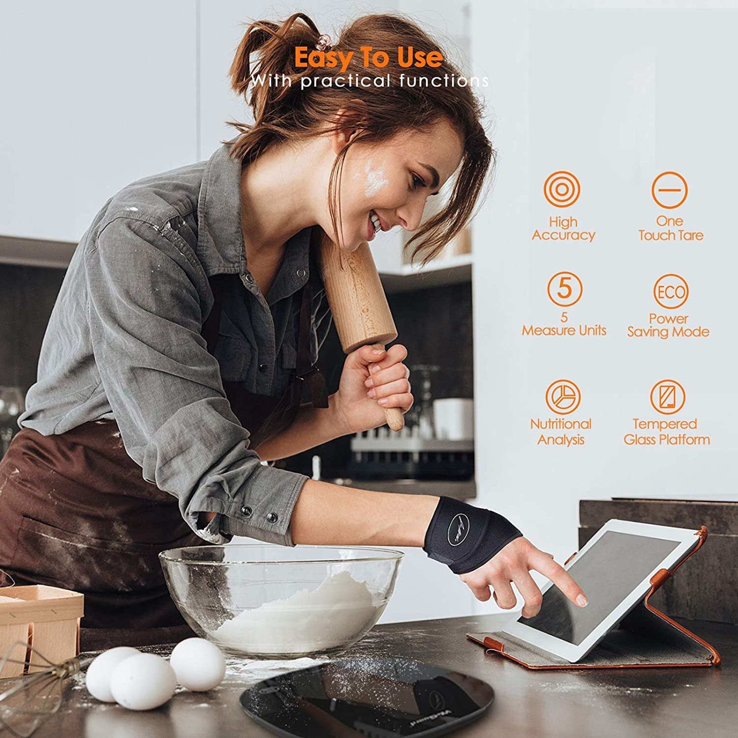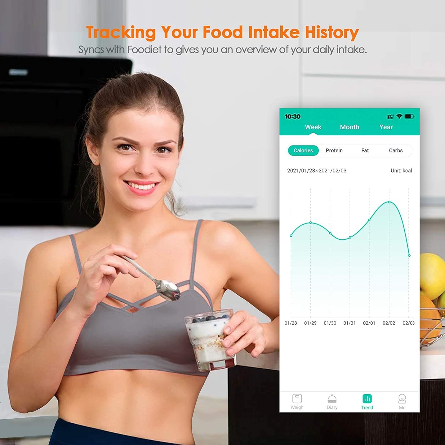 【Food Weight Scale Work with Smart App】📱 The WeGuard Digital kitchen scale is easy to use, work with smart nutrition app via Bluetooth on iOS or Android. Just download “FOODIET” via Apple Store or Google Play to monitor your intake, analyze nutrients, and store your intake diary.