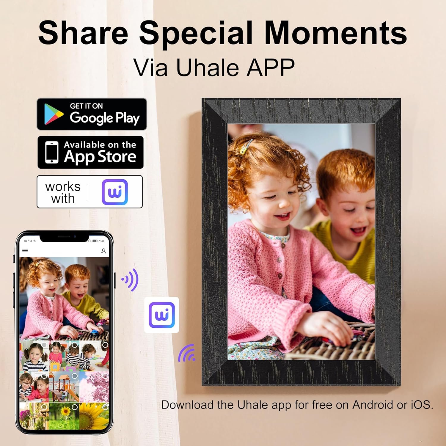 The Byybuo WiFi Smart Photo Frame allows you to stay in close contact with your family and friends.