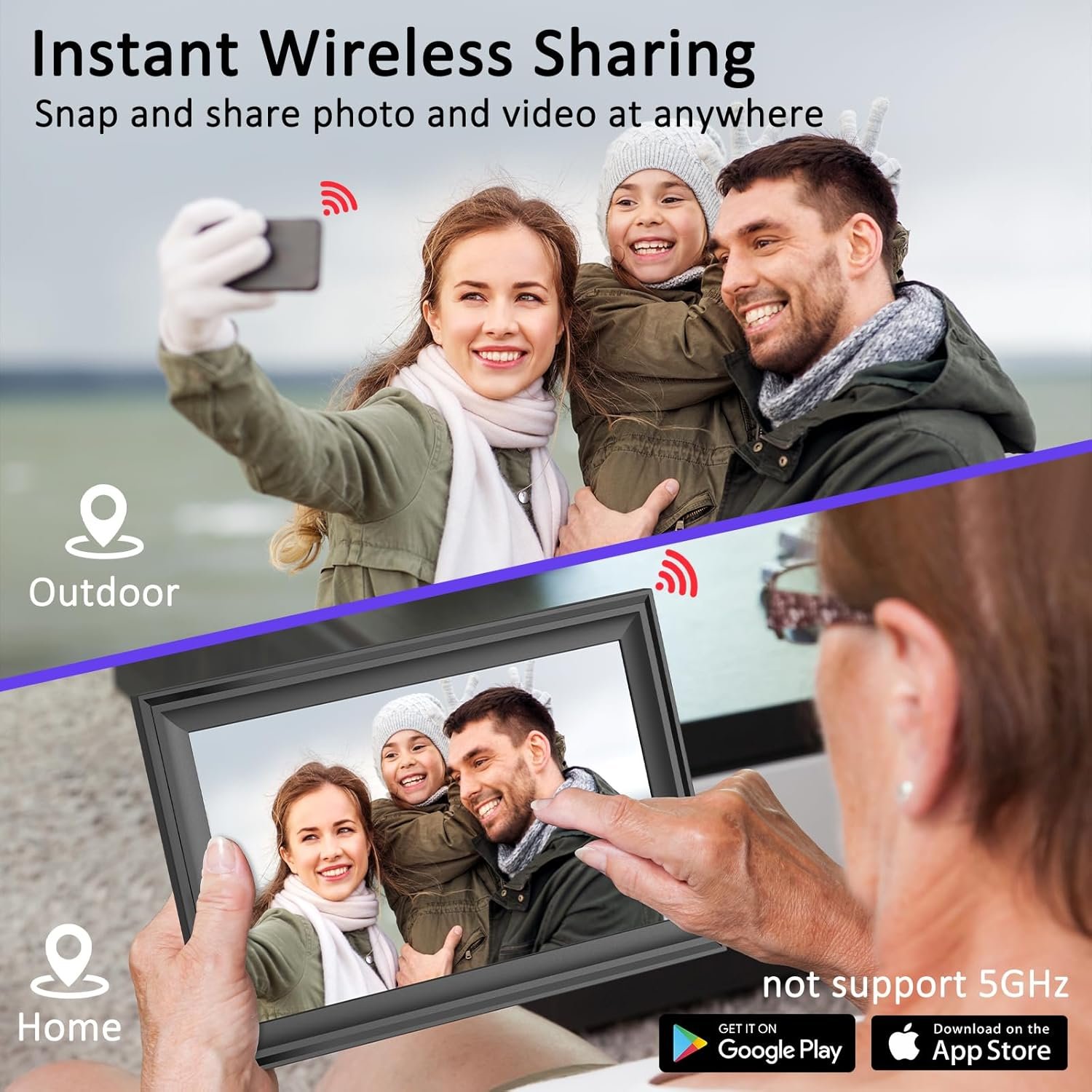 【Instantly Share Moments】Connect ThankViP digital photo frame to a 2.4GHz WiFi network(5GHz is not supported), pair digital frame with the free “Uhale” phone app which is available on both Android and iOS. You can share life moments instantly and privately at zero fee, invite unlimited friends to join and share photos and videos, creating a seamless connection with your loved ones wherever you are.