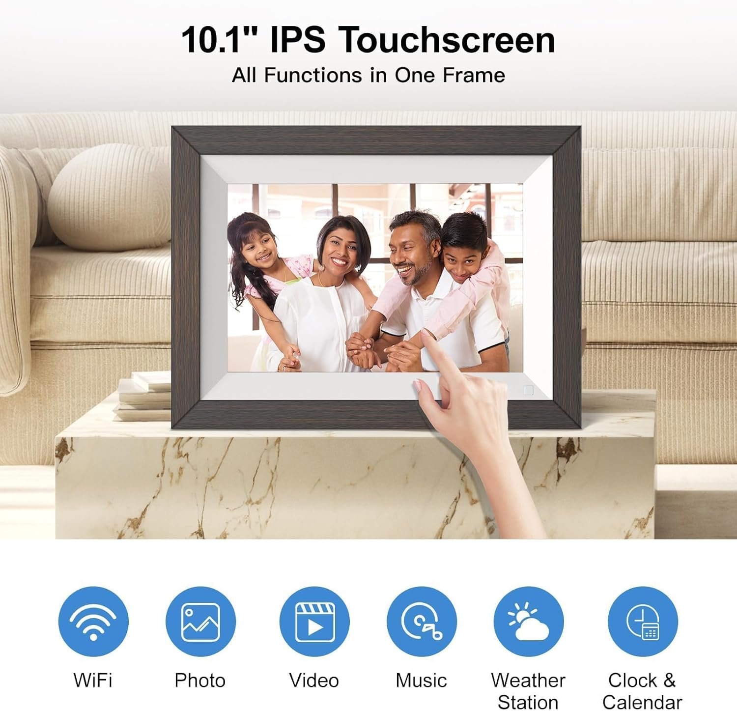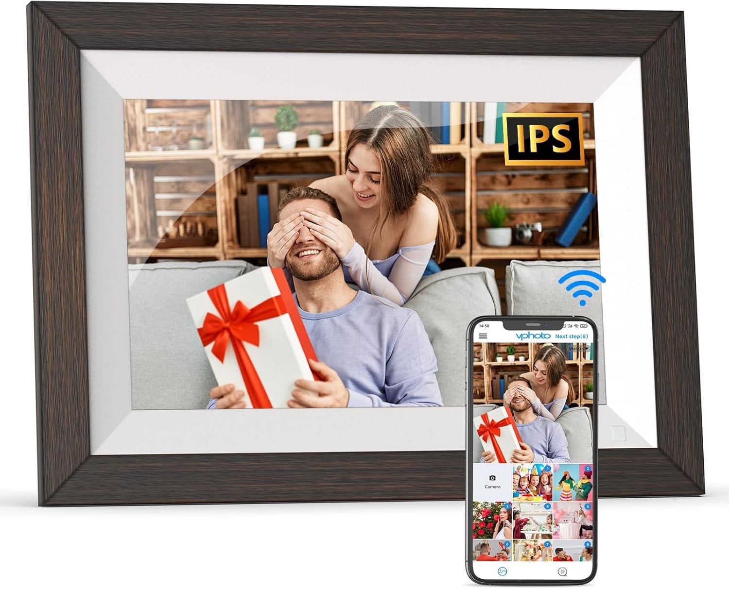 【Easy Sharing】 This digital picture frame with app will upload your life moments with your beloved ones instantly wherever you are. Simply install the VPhoto app or prepare an email account, then enjoy wonderful moments on the digital frames for photos within seconds. Share a smile each day with photos on the WiFi photo frame to stay connected.