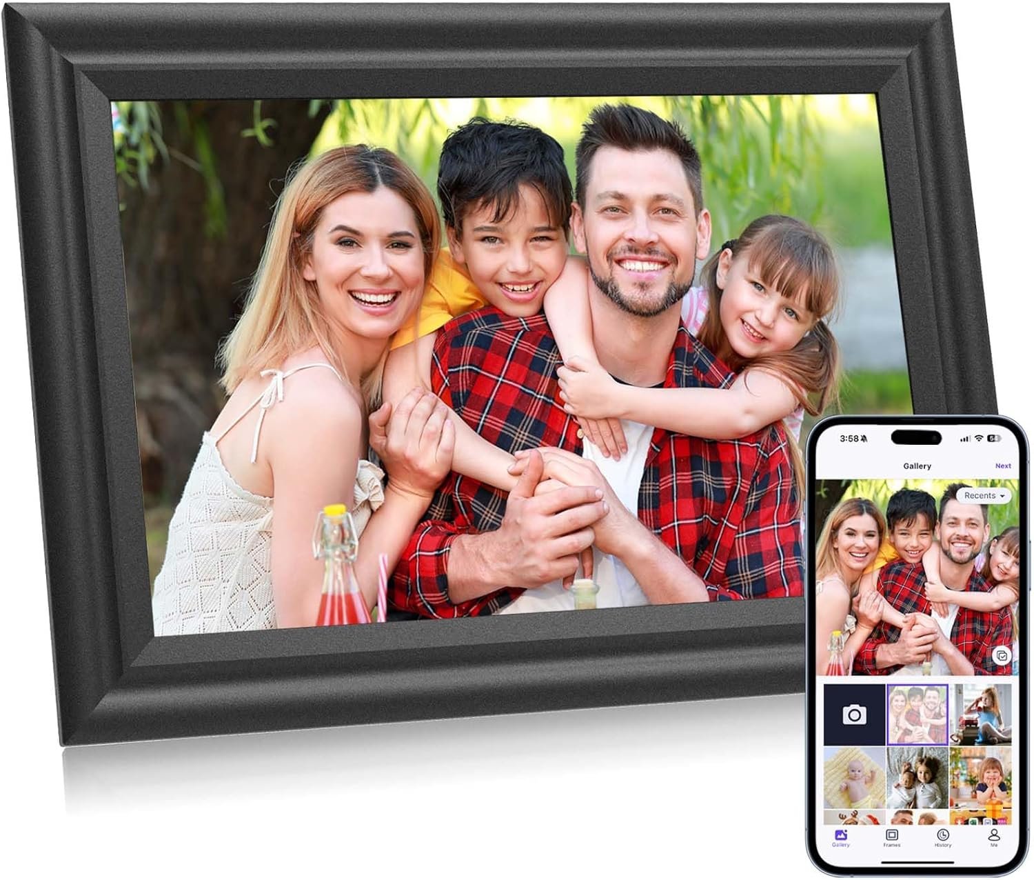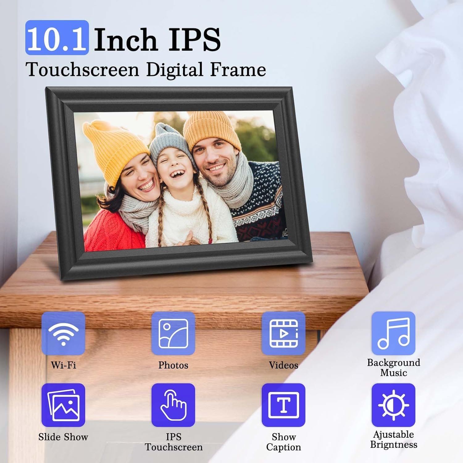 🖽[Stunning Image Quality] Enjoy clear, crisp photos of your memories and loved ones on the 10.1″ IPS touch screen with 1280×800 resolution, framed in a beautiful black classic photo frame design that adds a touch of elegance and warmth to any room.
