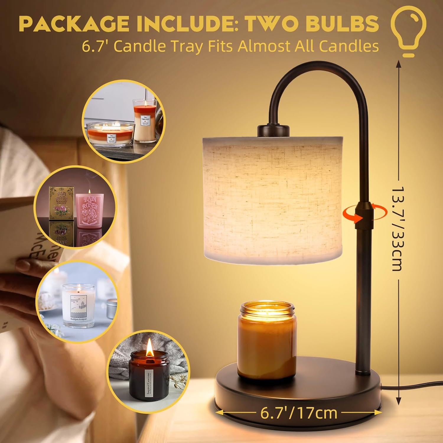 Dimmable Candle Warmer Lamp,Fragrance Candle Lamp Warmer with Timmer and Adjustable Pole,Candle Warmer with 2 * 50W GU10 Bulbs for Scented Candles,Home Decor Christmas Warming Gift(Linen)