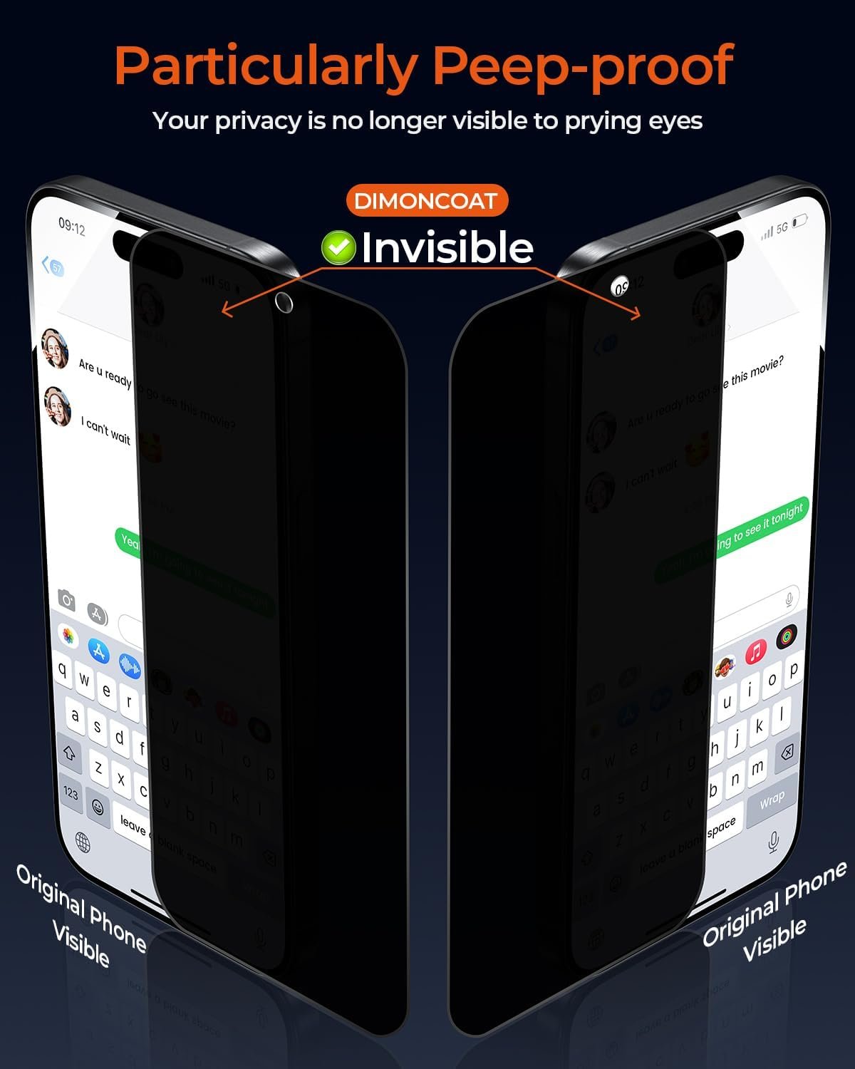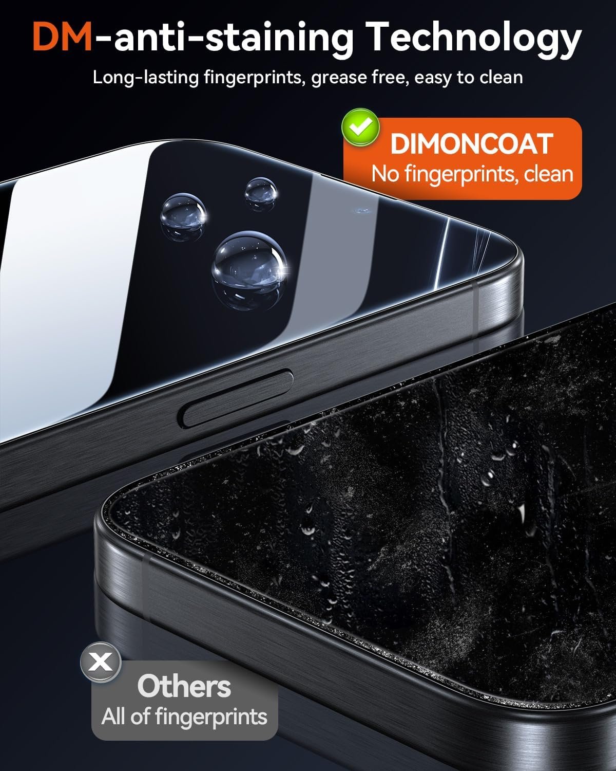 4-PACK Design for iPhone 15 Pro Max: With DIMONCOAT High Quality Privacy Screen Protectors, you not only get 4 packs of screen protectors for your iPhone 15 Pro Max 6.7 inch with double the quality of other brands.