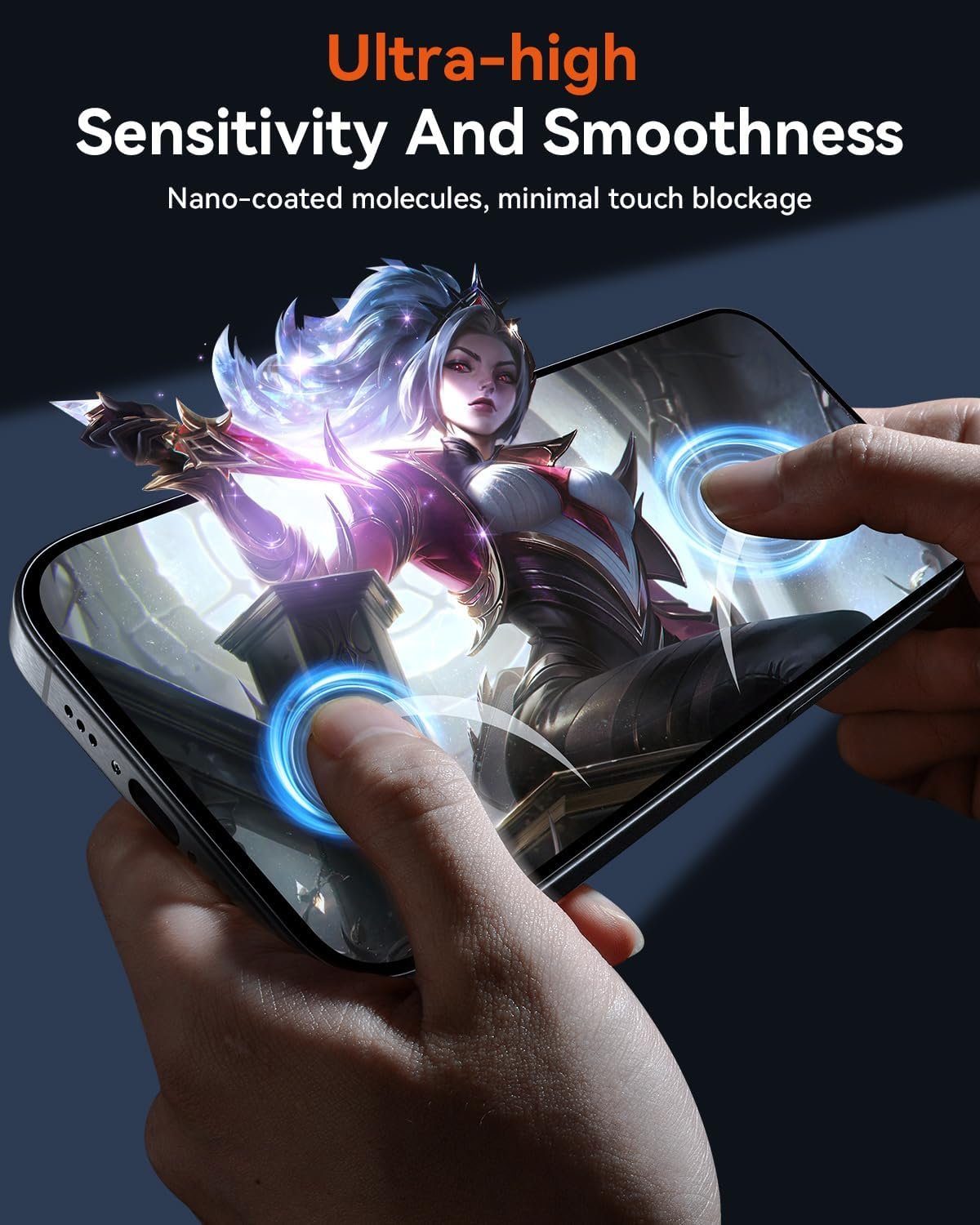100% ORIGINAL SCREEN EXPERIENCE: The glass screen protector for iPhone 15 Pro Max features an oleophobic coating, which protects your screen from unsightly marks, reduces fingerprint smudges by 96%, and is smooth and non-sticky to use. The ultra-thin, seamless design makes you barely notice it’s there, yet keeps your camera and sensors in perfect condition. It also delivers a responsive touchscreen experience, smooth video playback and gaming experience that you’re sure to love!