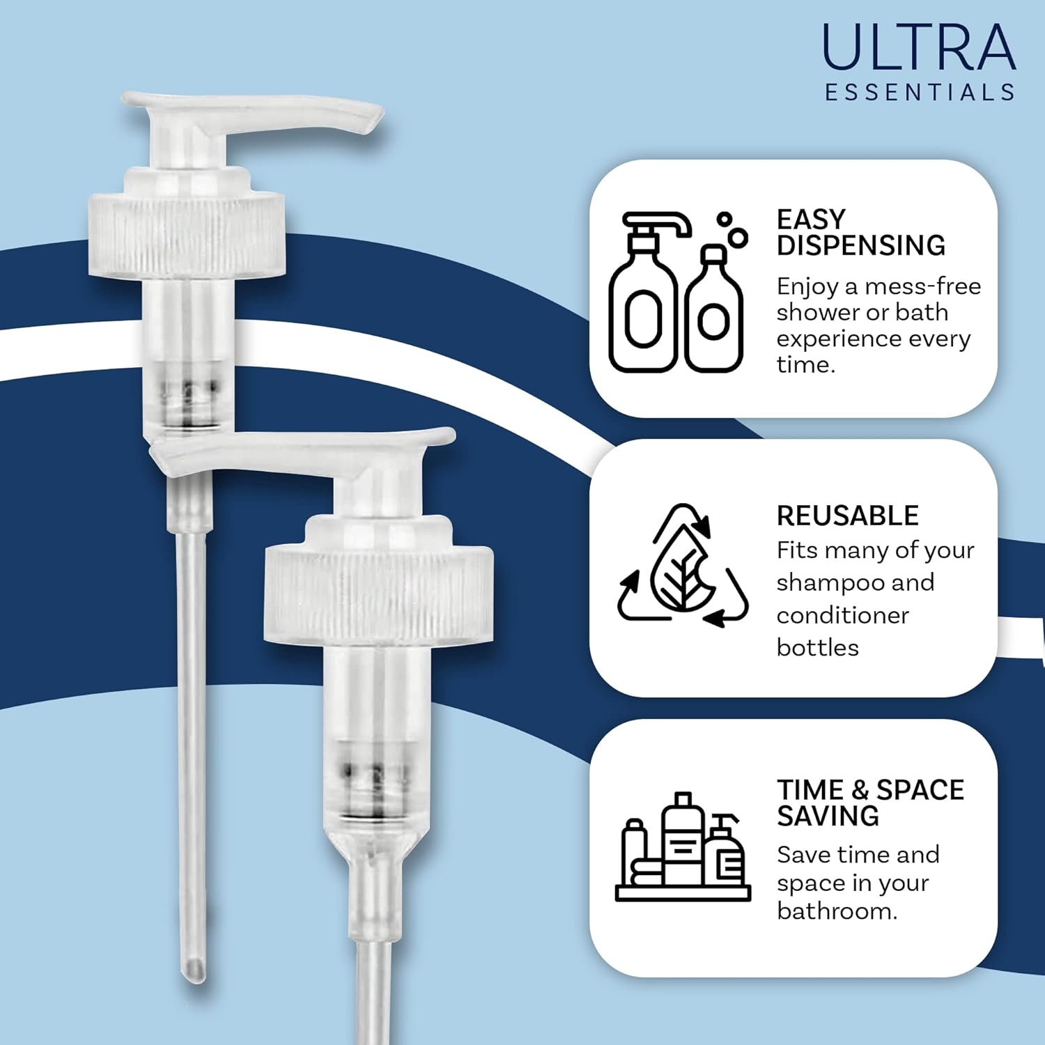 EASY DISPENSING: Our pump dispenser is the perfect tool for dispensing the right amount of your favorite shampoo, conditioner, or hair treatments. It dispenses 2 ml of product in each pump so will save you money. These pumps make it easy to use in the shower when bottles can be slippery and difficult to use.