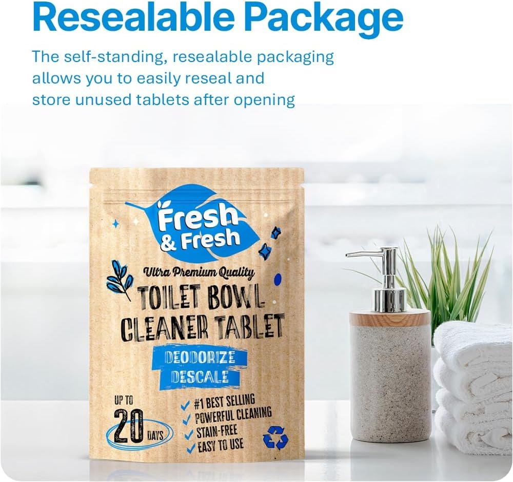 LONG-LASTING TABLET: With advanced technology, Fresh & Fresh toilet cleaners can continuously clean the toilet for up to 2-3 WEEKS with 20 flushes a day. The lifetime of each toilet tablet may vary with the frequency of flushes.