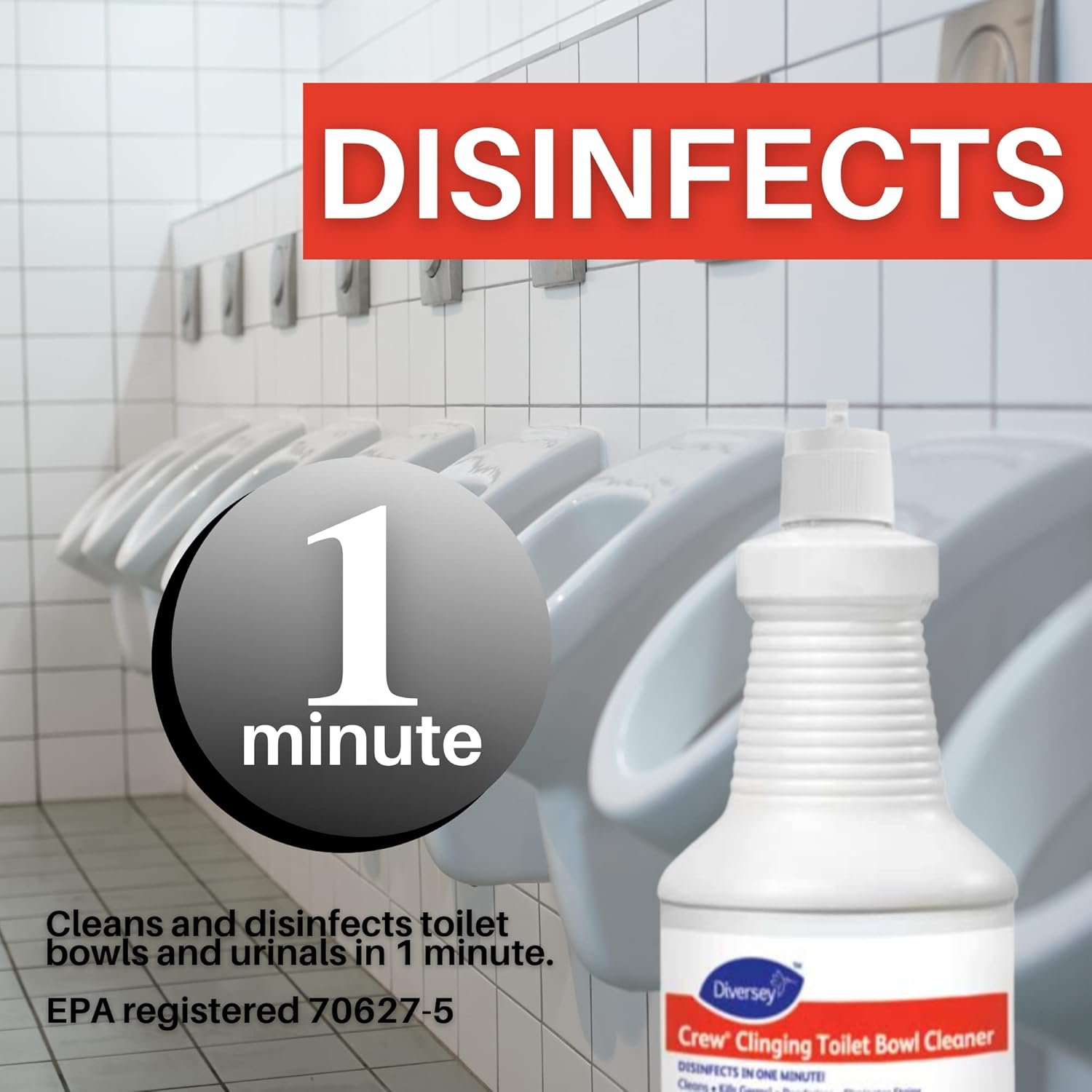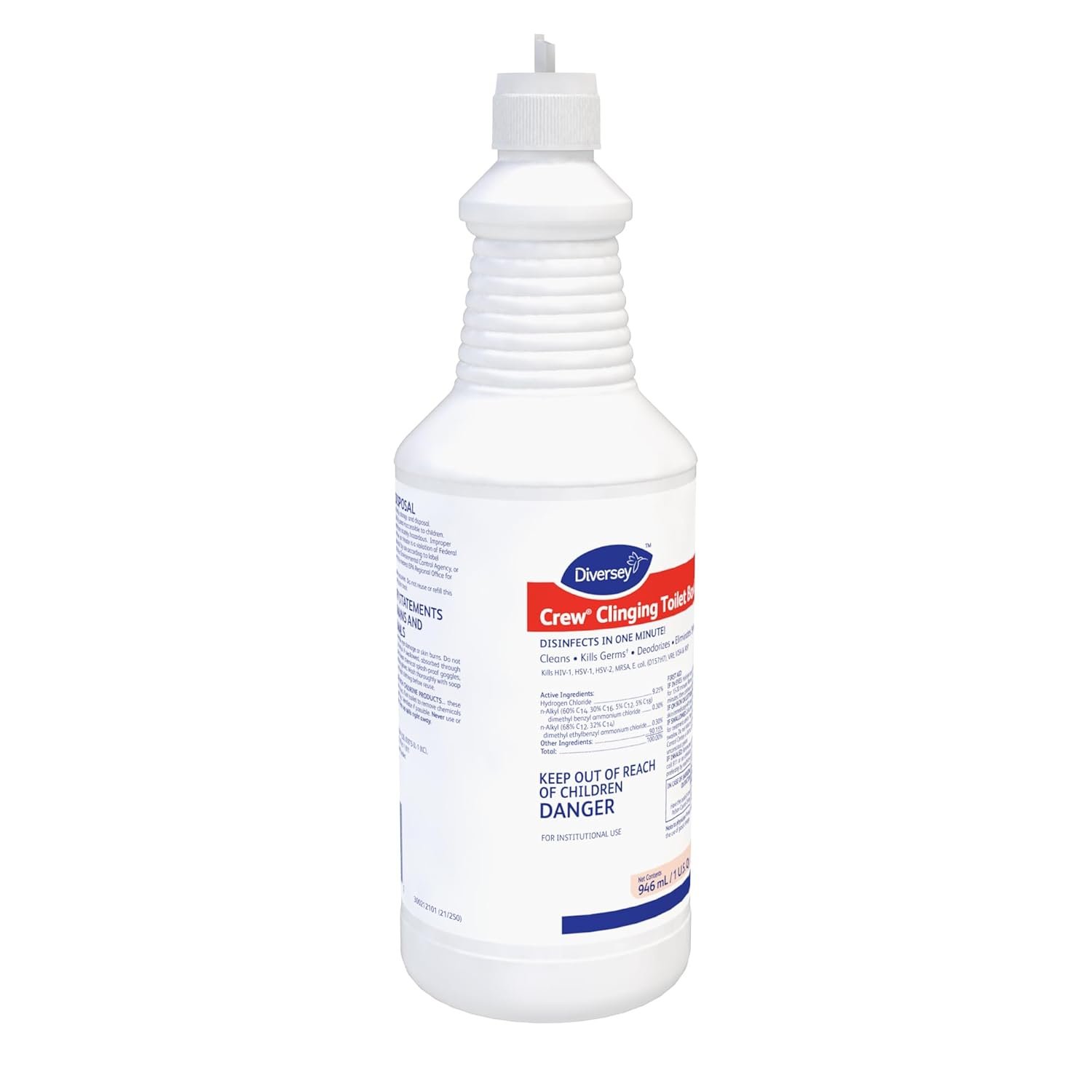 Keep your commode sparkling clean with Crew Clinging Toilet Bowl Cleaner. This all purpose bowl cleaner lifts stains, rust, hard water, lime scale, and uric acid deposits from restroom services. Clean your bathrooms with confidence as the solution disinfects bacteria and viruses after just one minute of contact. Crew’s thickened formula with 9.25% hydrochloric acid clings to vertical surfaces, minimizing scrubbing time. High traffic restrooms in the restaurant, hospitality, and tourism industries benefit from fast and effective toilet bowl cleaners. You can even remove tough-to-scrub toilet bowl calcification rings with this powerful solution; just apply, wait, and scrub.
