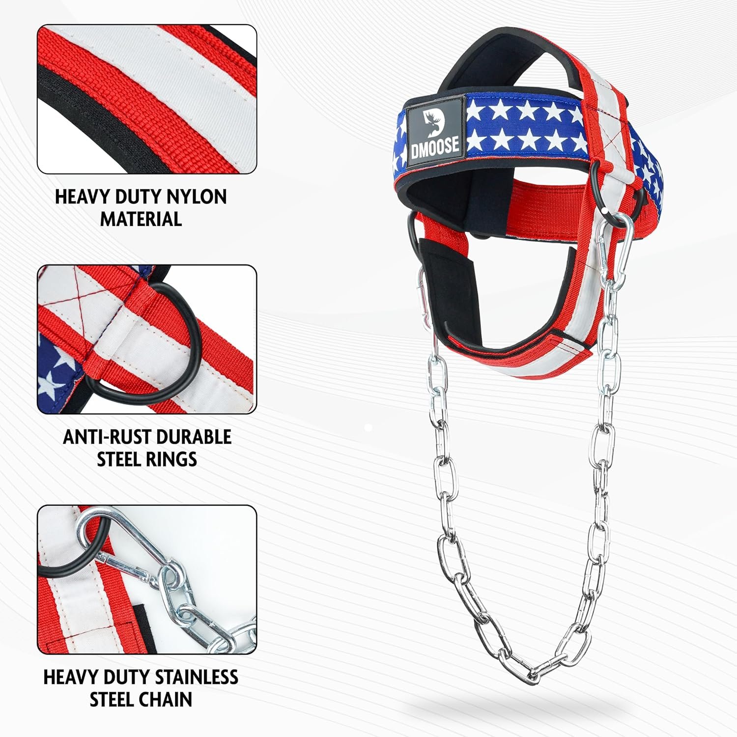 𝐇𝐄𝐀𝐕𝐘-𝐃𝐔𝐓𝐘 𝐂𝐎𝐍𝐒𝐓𝐑𝐔𝐂𝐓𝐈𝐎𝐍 𝐅𝐎𝐑 𝐃𝐔𝐑𝐀𝐁𝐈𝐋𝐈𝐓𝐘: Crafted with a heavy-duty stainless steel chain and anti-rust durable steel rings, the DMoose Neck Exercise Equipment is built to withstand the most intense workouts. The premium nylon material and double stitching ensure that this neck workout harness won’t wear out, even with regular use. This durable construction means you can rely on it for consistent performance, making it an essential addition to your strength training equipment.