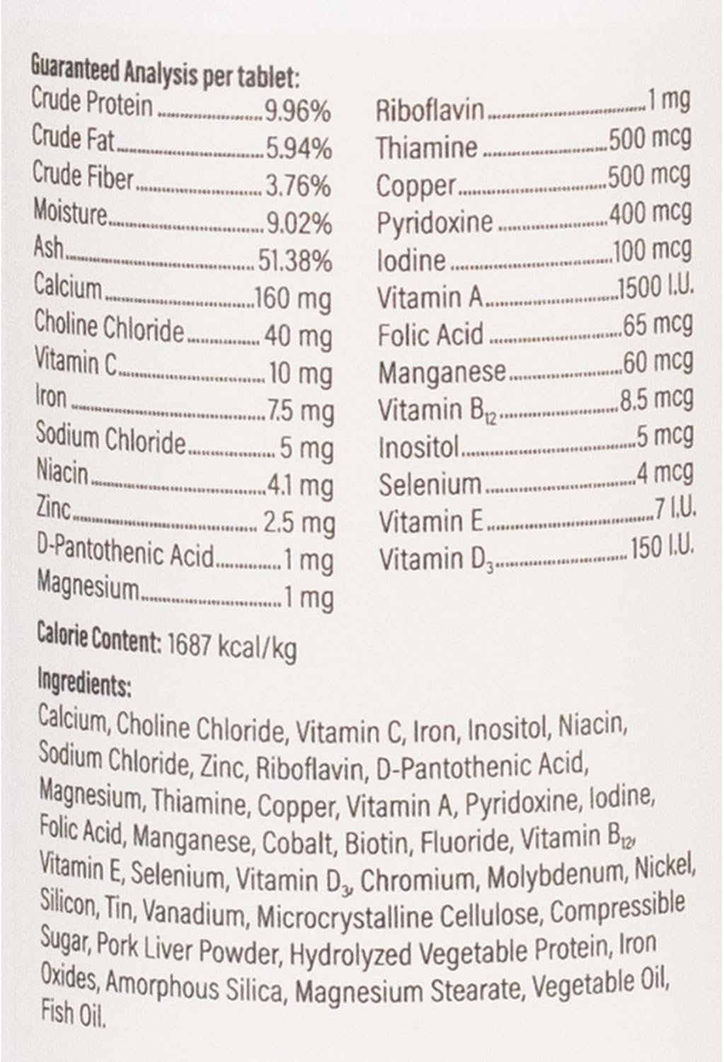 INGREDIENTS – include, but are not limited to, fish oil, calcium, and Vitamins C, B12, and D3; formulated with an artificial roast beef and liver flavoring