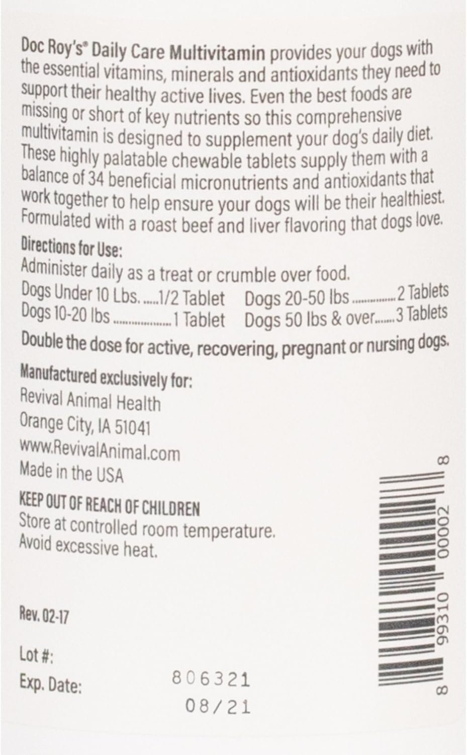 Doc Roy’s Daily Care Multivitamin with Minerals for Dogs- Canine Daily Health Supplement- 180ct Tablets