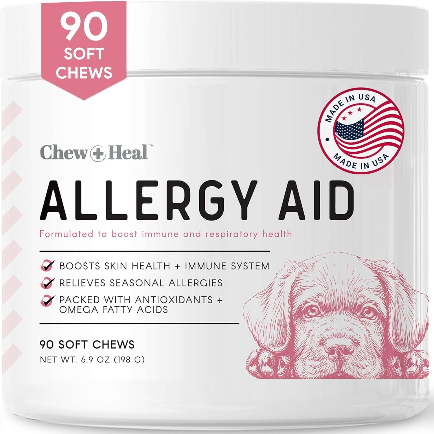 MADE IN AMERICA: This allergy immunity for dogs is designed for small dogs, large dogs and even cats! The soft chews are delicious treats your pet will love! Recommended dosage varies by animal size, consult the package label. The 90 chewable pills are enough to last for up to 45 days.