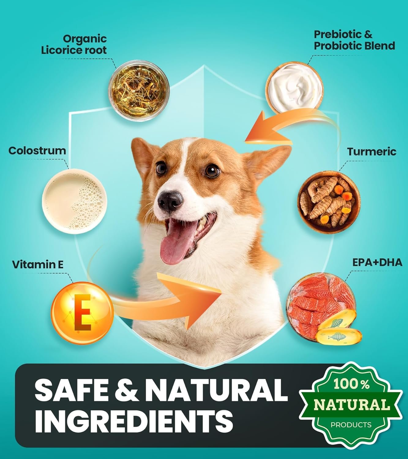 THE SECRET TO YOUR DOG’S SOFT, GLEAMING FUR! Skin and coat problems in dogs, such as roughness, shedding, and itching, are often caused by nutritional deficiencies in the gut. Our itch relief for dogs provides vital nutrients like EPA and DHA for gut, promoting smooth skin and a shiny coat. Restore your pet’s skin health with our allergy support and get them back to their all-day play, jump, look-how-I-shiny mode! That’s what you and I are looking forward to!