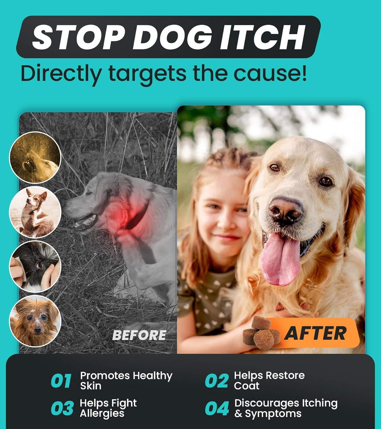 HASSLE-FREE RETURN AND EXCHANGE! Our top priorities are ensuring customer satisfaction and the safety of your beloved pet. Each chew undergoes strict testing to meet high standards of effectiveness and safety. Each package comes with the 60-day after sale service and we promise the hassle-free replacement or refund without the need to RETURN if you are unsatisfied with the effects of dog Itch relief chews!